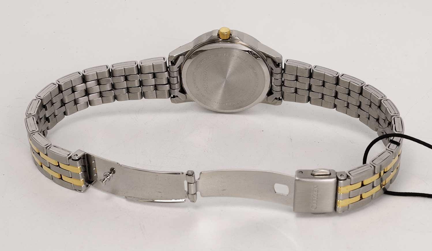 Женские наручные часы Citizen Eco Drive EQ0608-55E. Точный кварцевый механизм. Браслет из нержавеющей стали. Аккумулятор обеспечивает часы достаточным питанием приблизительно на 2 года. Корпус изготовлен из высококачественной нержавеющей стали 316L с высокими антикоррозийными свойствами. Прочное, устойчивое к царапинам минеральное стекло защищает часы от повреждений. На циферблате отображается текущее число месяца и день недели. Часы являются водонепроницаемыми до 3 Бар. Цвет циферблата: Серебристый. Цвет корпуса: Черный. Светодиодная подсветка. Толщина: 8 мм. Гарантия: 2 года.