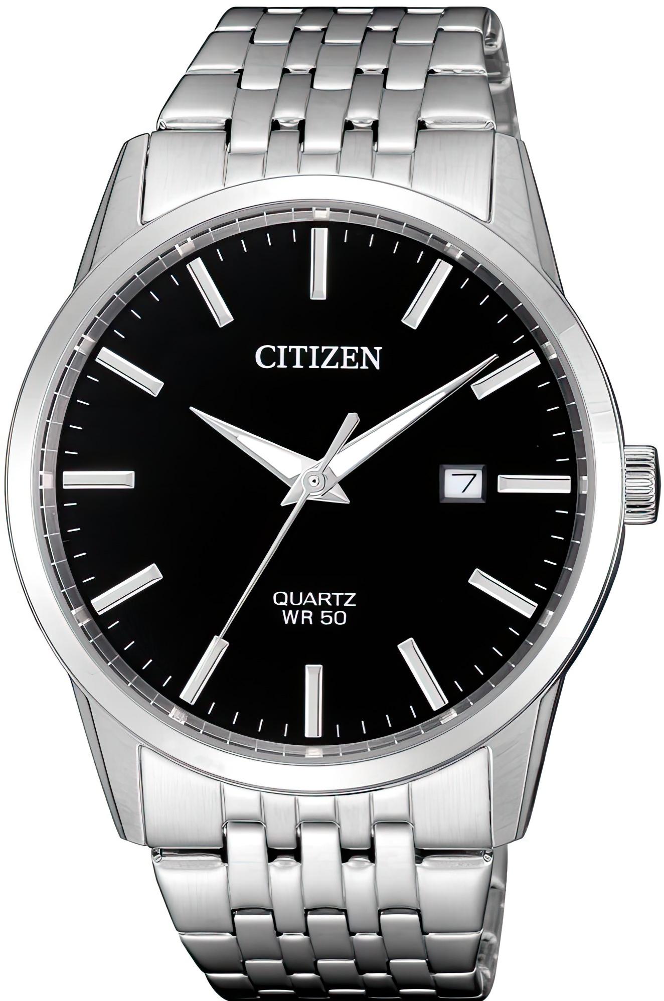 Мужские наручные часы Citizen Quartz BI5000-87E. Точный кварцевый механизм с аналоговой индикацией. Корпус изготовлен из высококачественной нержавеющей стали 316L с высокими антикоррозийными свойствами. На стрелки и отметки нанесен светонакопительный состав, благодаря этому считывать информацию с циферблата возможно и в темноте. На циферблате отображается текущее число месяца. Браслет из нержавеющей стали. Прочное, устойчивое к царапинам минеральное стекло защищает часы от повреждений. Часы являются водонепроницаемыми до 5 Бар. Цвет корпуса: Серебристый. Цвет циферблата: Черный. Ширина (с заводной головкой): 39мм. Толщина: 8мм. Гарантия: 2 года.