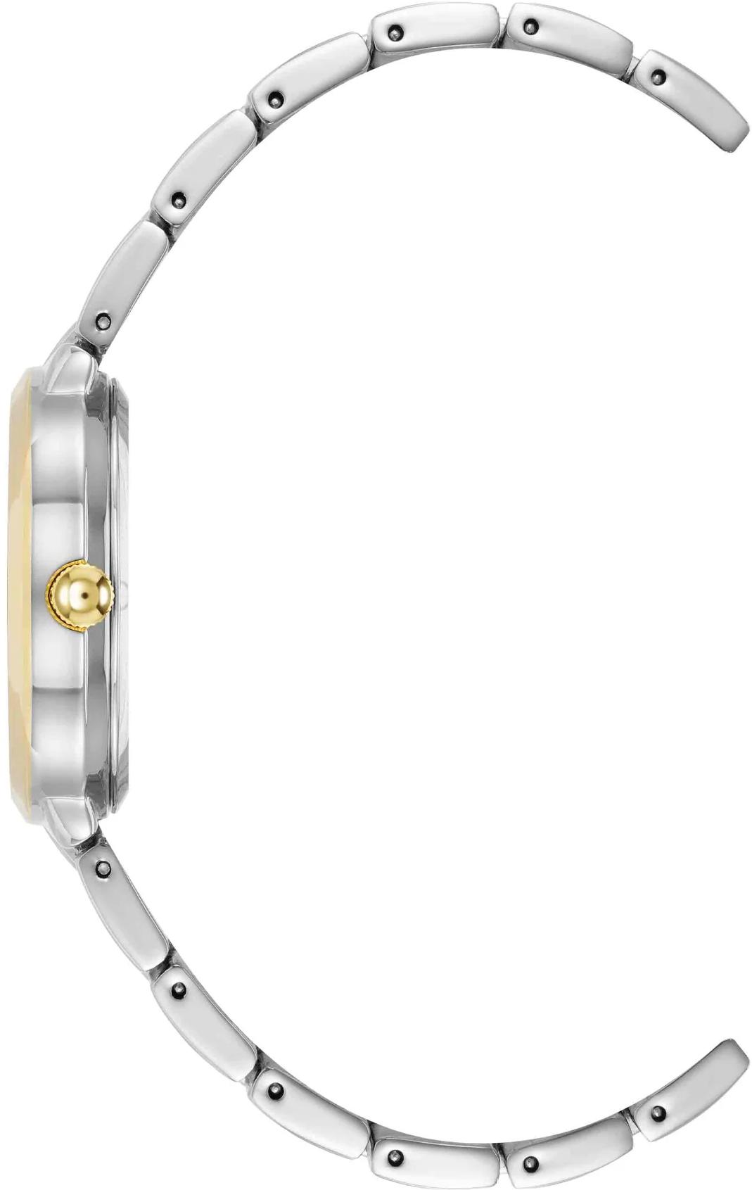 Женские наручные часы Anne Klein Metals 5021SVTT. Точный кварцевый механизм с аналоговой индикацией. Браслет из нержавеющей стали. Латунный браслет. Прочное, устойчивое к царапинам минеральное стекло защищает часы от повреждений. Часы являются водонепроницаемыми до 3 Бар. Цвет циферблата: Серебристый. Цвет циферблата: Желтое золото. Цвет корпуса: Белый. Толщина: 8 мм. Гарантия: 2 года.
