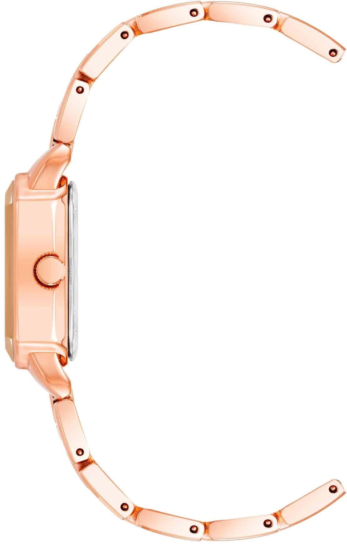 Женские наручные часы Anne Klein Metals 5026RGRG. Точный кварцевый механизм с аналоговой индикацией. Браслет из нержавеющей стали. Браслет из нержавеющей стали. Прочное, устойчивое к царапинам минеральное стекло защищает часы от повреждений. Часы являются водонепроницаемыми до 3 Бар. Цвет циферблата: Розовое золото. Цвет корпуса: Золотистый. Толщина: 8 мм. Гарантия: 2 года.