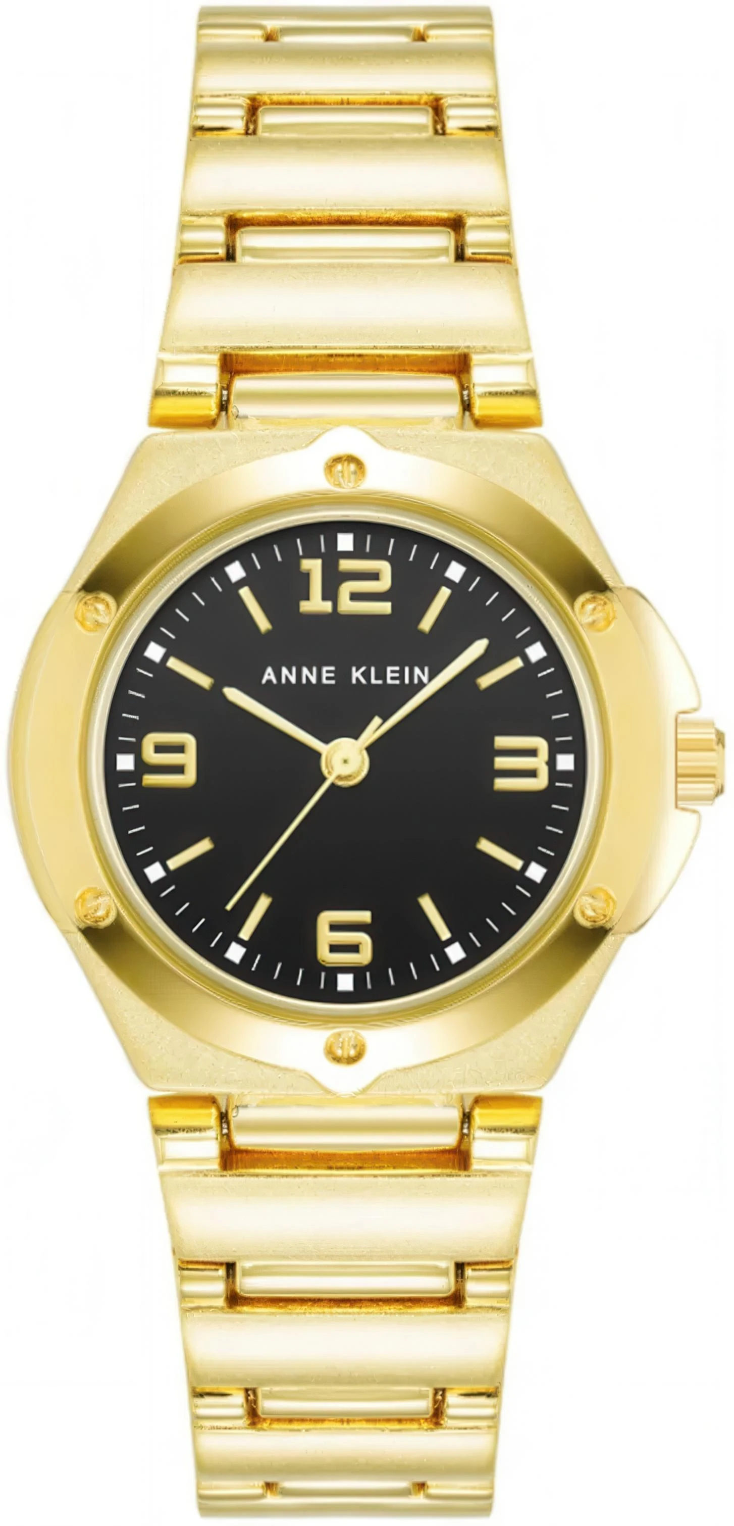Женские наручные часы Anne Klein Metals 8654BKGB. Точный кварцевый механизм с аналоговой индикацией. Браслет из нержавеющей стали. Браслет из нержавеющей стали. Прочное, устойчивое к царапинам минеральное стекло защищает часы от повреждений. Часы являются водонепроницаемыми до 3 Бар. Цвет циферблата: Желтое золото. Цвет корпуса: Черный. Высота (с ушками): 33 мм. Толщина: 8 мм. Гарантия: 2 года.