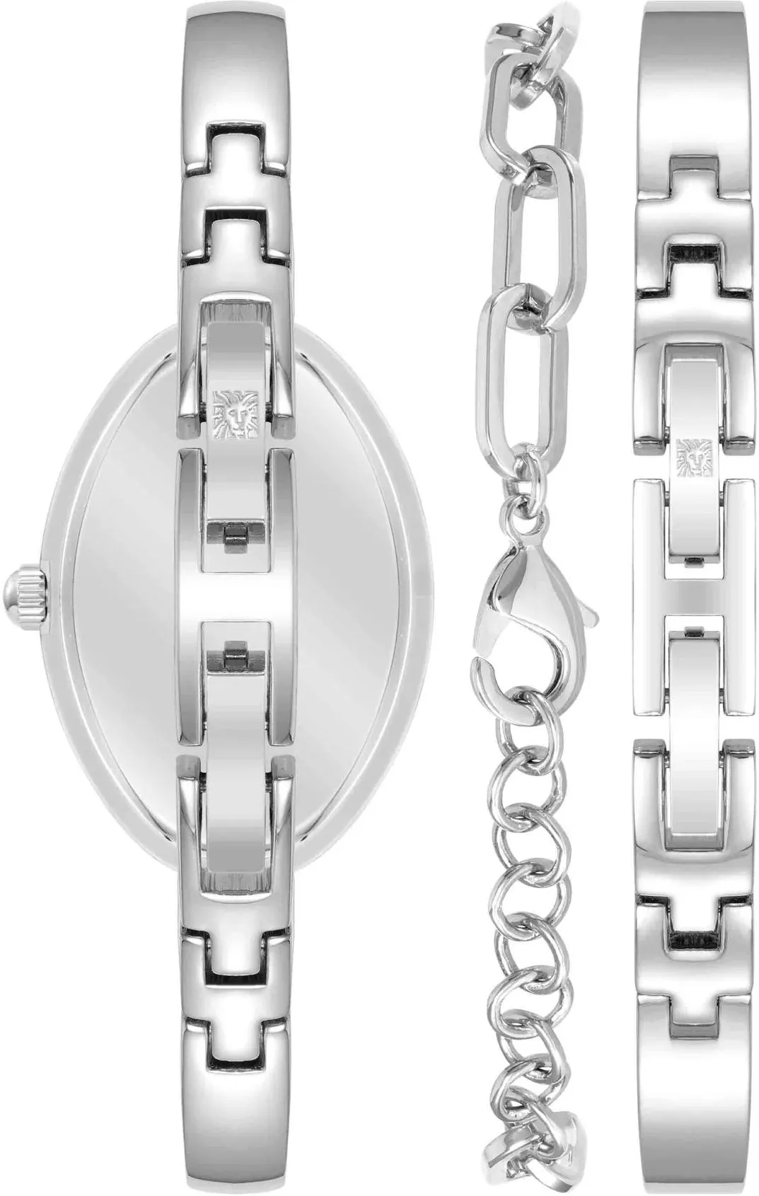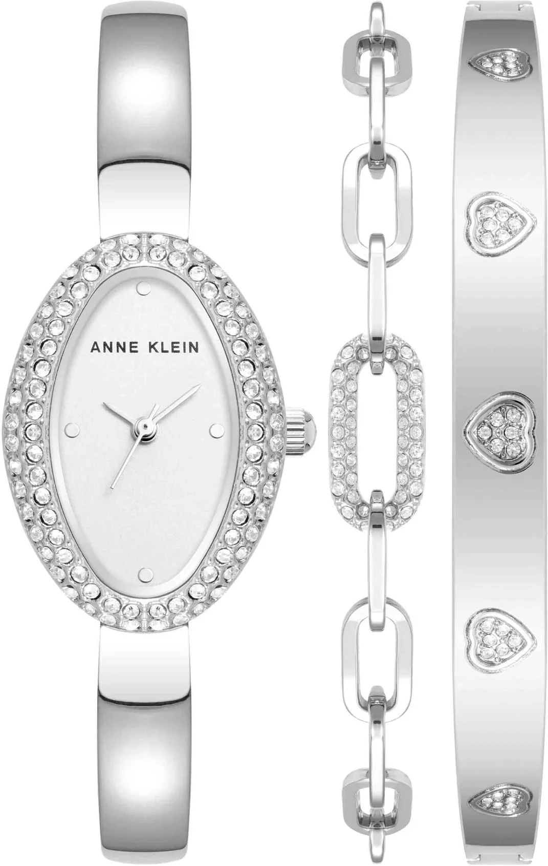 Женские наручные часы Anne Klein Box Set 5075SVST. Точный кварцевый механизм с аналоговой индикацией. Браслет из нержавеющей стали. Латунный браслет. Прочное, устойчивое к царапинам минеральное стекло защищает часы от повреждений. Часы являются водонепроницаемыми до 3 Бар. Цвет циферблата: Серебристый. Цвет корпуса: Серебристый. Толщина: 6 мм. Гарантия: 2 года.
