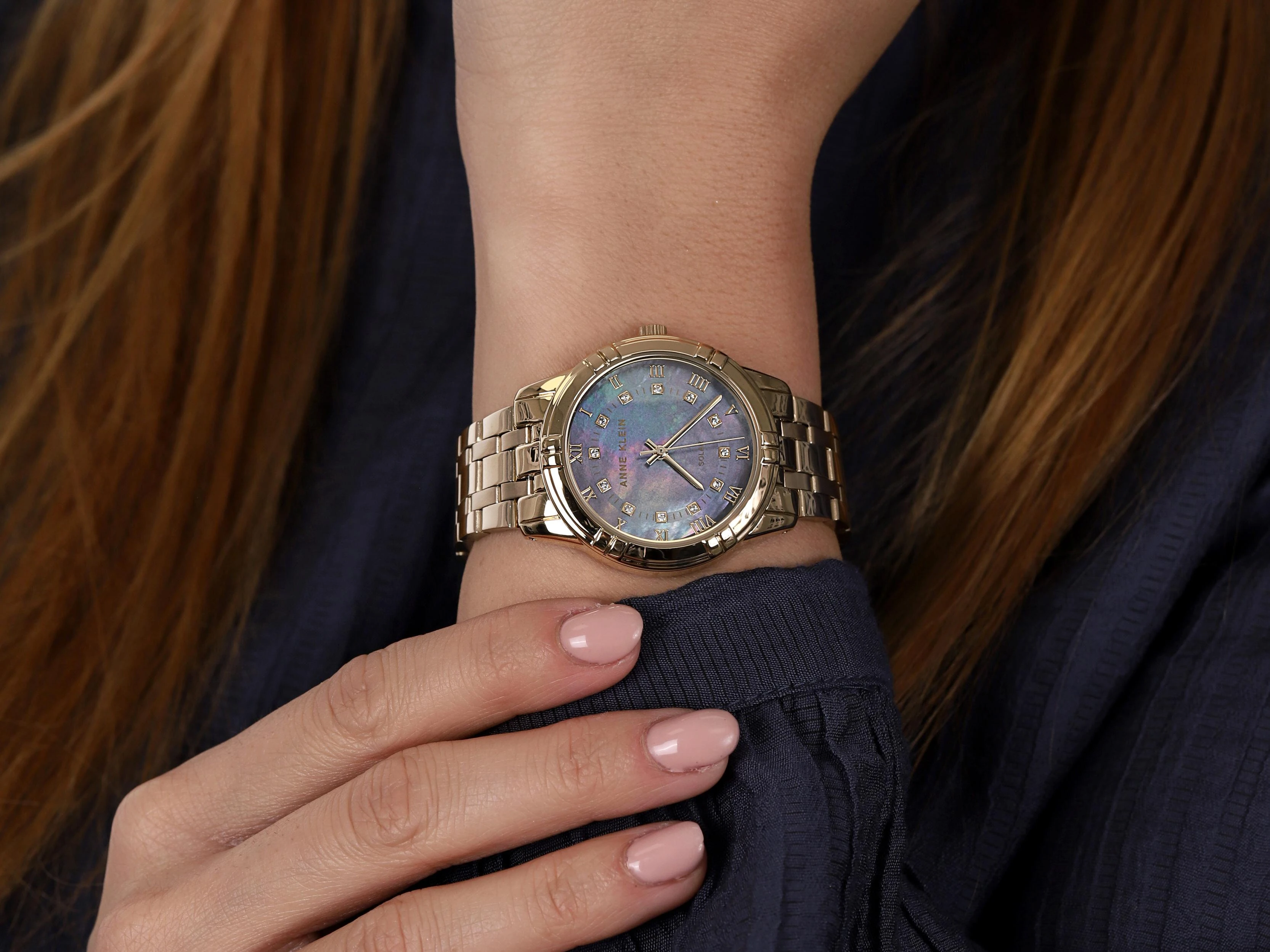 Женские наручные часы Anne Klein Considered 3768BMGB. Точный кварцевый механизм с аналоговой индикацией. Корпус изготовлен из высококачественной нержавеющей стали 316L с высокими антикоррозийными свойствами. Солнечная батарейка. Солнечная подзаряжающаяся батарейка обеспечивает питание часов для работы. Браслет из нержавеющей стали. Прочное, устойчивое к царапинам минеральное стекло защищает часы от повреждений. Часы являются водонепроницаемыми до 3 Бар. Цвет корпуса: Желтое золото. Цвет циферблата: Черный. Гарантия: 2 года.