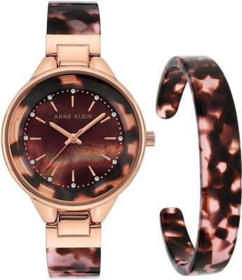 Точный кварцевый механизм. • Корпус: металл • Цвет корпуса: розовое золото • Ремень/браслет: пластик • Цвет браслета: принт черепахи • Цвет циферблата: коричневый перламутр • Водозащита: 100ft/3АТМ • 1 браслет в комплекте • Размер корпуса (мм): 36mm x 42mm