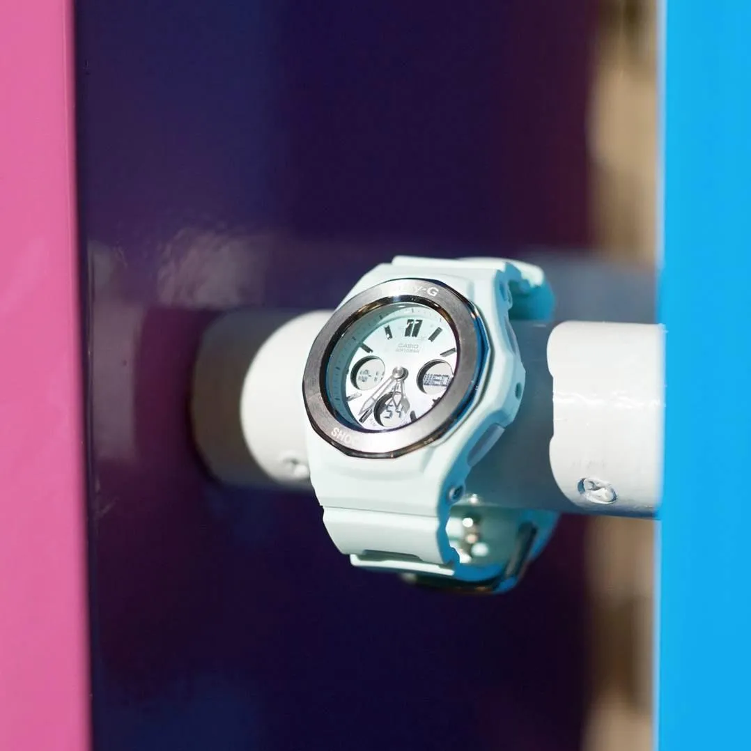 Женские наручные часы Casio Baby-G BGA-100ST-3A. Точный кварцевый механизм с аналого-цифровой индикацией. Полимерный корпус надежно защищает часы от механических повреждений. Светодиодная подсветка. На циферблате отображается текущее число, месяц и день недели. Ударопрочная конструкция часов защищает от ударов и вибрации. Функция хронографа. Полимерный ремешок. Натуральный полимерный материал является идеальным для изготовления ремешка благодаря своей чрезвычайной прочности и гибкости. Прочное, устойчивое к царапинам минеральное стекло защищает часы от повреждений.Часы являются водонепроницаемыми до 10 Бар. Цвет корпуса: Голубой. Ширина (с заводной головкой): 43мм. Толщина: 13мм. Гарантия: 2 года.