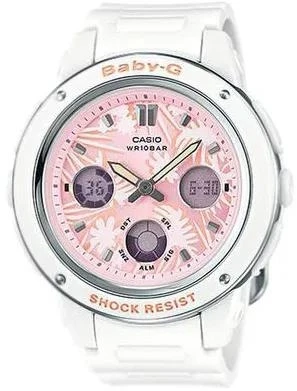 Женские наручные часы Casio Baby-G BGA-150F-7A. Точный кварцевый механизм с аналого-цифровой индикацией. Корпус изготовлен из высококачественной нержавеющей стали 316L с высокими антикоррозийными свойствами. Светодиодная подсветка. На циферблате отображается текущее число, месяц и день недели. Ударопрочная конструкция часов защищает от ударов и вибрации. Функция хронографа. Полимерный ремешок. Натуральный полимерный материал является идеальным для изготовления ремешка благодаря своей чрезвычайной прочности и гибкости. Прочное, устойчивое к царапинам минеральное стекло защищает часы от повреждений. Часы являются водонепроницаемыми до 10 Бар. Цвет корпуса: Белый. Цвет циферблата: Розовый. Ширина (с заводной головкой): 43мм. Толщина: 13мм. Гарантия: 2 года.