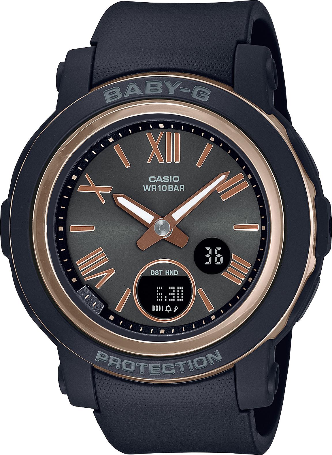 Женские наручные часы Casio Baby-G BGA-290-1A. Точный кварцевый механизм с аналоговой индикацией. Полимерный ремешок. Натуральный полимерный материал является идеальным для изготовления ремешка благодаря своей чрезвычайной прочности и гибкости. После настройки автоматический календарь всегда отображает точную дату. Аккумулятор обеспечивает часы достаточным питанием приблизительно на 3 года. Функция будильника. Функция хронографа. Отображение текущего времени в основных городах и конкретных областях по всему миру. Функция таймера. Таймеры обратного отсчета напомнят Вам о текущих или особенных событиях, издав звуковой сигнал в установленное время. Ударопрочная конструкция часов защищает от ударов и вибрации. Отображение времени возможно в 12-часовом или 24-часовом формате. Полимерный ремешок. Натуральный полимерный материал является идеальным для изготовления ремешка благодаря своей чрезвычайной прочности и гибкости. Браслет из нержавеющей стали. Прочное, устойчивое к царапинам минеральное стекло защищает часы от повреждений. На циферблате отображается текущее число, месяц и день недели. Часы являются водонепроницаемыми до 10 Бар. Цвет циферблата: Черный. Цвет корпуса: Черный. Цвет корпуса: Золотистый. Светодиодная подсветка. На стрелки и отметки нанесен светонакопительный состав, благодаря этому считывать информацию с циферблата возможно и в темноте. Толщина: 10 мм. Гарантия: 2 года.