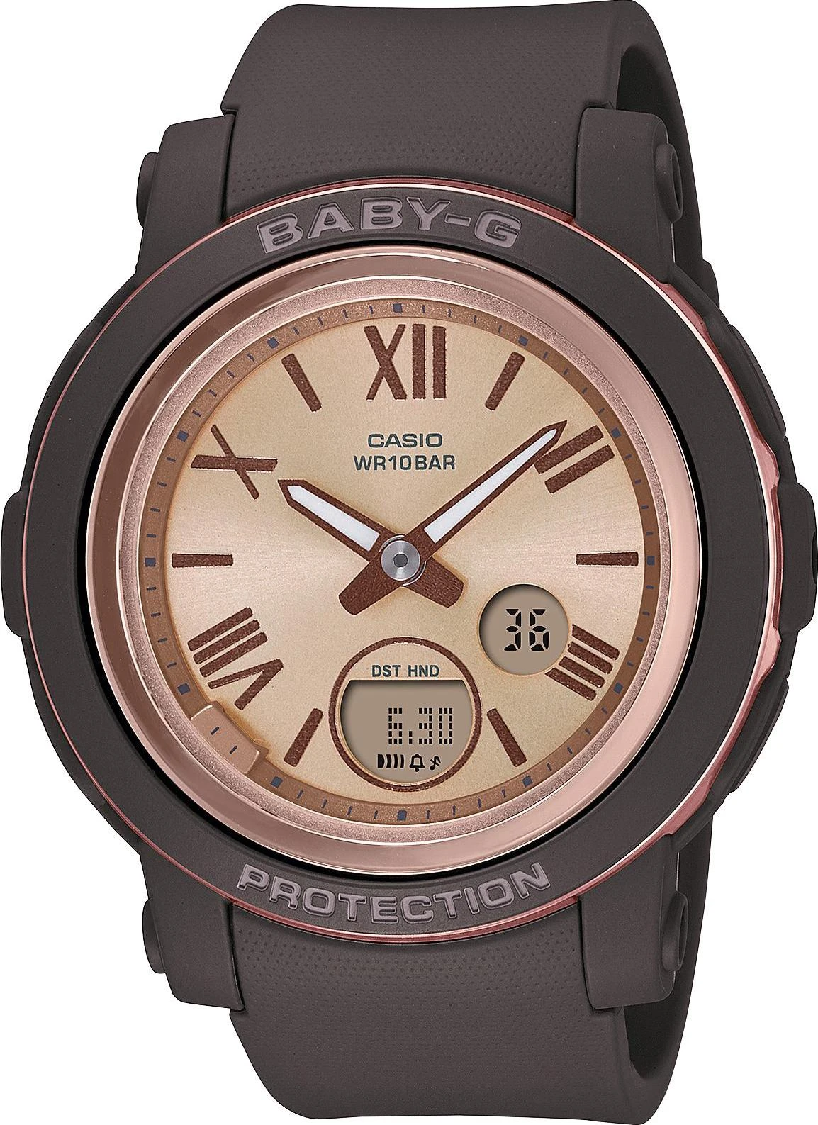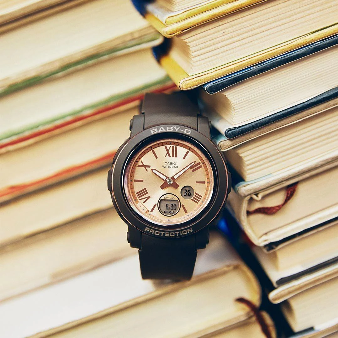 Женские наручные часы Casio Baby-G BGA-290-5A. Точный кварцевый механизм с аналоговой индикацией. Полимерный ремешок. Натуральный полимерный материал является идеальным для изготовления ремешка благодаря своей чрезвычайной прочности и гибкости. После настройки автоматический календарь всегда отображает точную дату. Аккумулятор обеспечивает часы достаточным питанием приблизительно на 3 года. Функция будильника. Функция хронографа. Отображение текущего времени в основных городах и конкретных областях по всему миру. Функция таймера. Таймеры обратного отсчета напомнят Вам о текущих или особенных событиях, издав звуковой сигнал в установленное время. Ударопрочная конструкция часов защищает от ударов и вибрации. Отображение времени возможно в 12-часовом или 24-часовом формате. Полимерный ремешок. Натуральный полимерный материал является идеальным для изготовления ремешка благодаря своей чрезвычайной прочности и гибкости. Прочное, устойчивое к царапинам минеральное стекло защищает часы от повреждений. На циферблате отображается текущее число, месяц и день недели. Часы являются водонепроницаемыми до 10 Бар. Цвет циферблата: Коричневый. Цвет циферблата: Розовое золото. Цвет корпуса: Золотистый. Светодиодная подсветка. На стрелки и отметки нанесен светонакопительный состав, благодаря этому считывать информацию с циферблата возможно и в темноте. Толщина: 10 мм. Гарантия: 2 года.