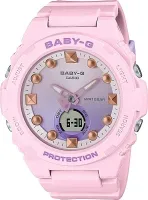 Женские наручные часы Casio Baby-G BGA-320-4A. Точный кварцевый механизм с аналого-цифровой индикацией. Полимерный ремешок. Натуральный полимерный материал является идеальным для изготовления ремешка благодаря своей чрезвычайной прочности и гибкости. После настройки автоматический календарь всегда отображает точную дату. Аккумулятор обеспечивает часы достаточным питанием приблизительно на 3 года. Функция будильника. Функция хронографа. Отображение текущего времени в основных городах и конкретных областях по всему миру. Функция таймера. Таймеры обратного отсчета напомнят Вам о текущих или особенных событиях, издав звуковой сигнал в установленное время. Ударопрочная конструкция часов защищает от ударов и вибрации. Отображение времени возможно в 12-часовом или 24-часовом формате. Полимерный ремешок. Натуральный полимерный материал является идеальным для изготовления ремешка благодаря своей чрезвычайной прочности и гибкости. Прочное, устойчивое к царапинам минеральное стекло защищает часы от повреждений. На циферблате отображается текущее число, месяц и день недели. Часы являются водонепроницаемыми до 10 Бар. Цвет циферблата: Розовый. Цвет корпуса: Розовый. Цвет корпуса: Фиолетовый. Светодиодная подсветка. На стрелки и отметки нанесен светонакопительный состав, благодаря этому считывать информацию с циферблата возможно и в темноте. Толщина: 12 мм. Гарантия: 2 года.