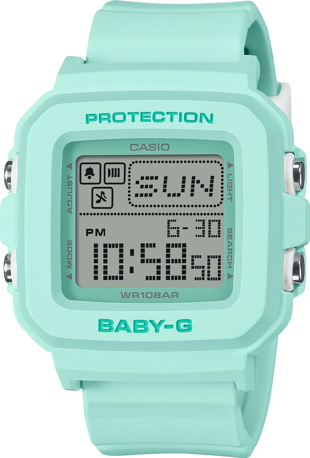 Причудливый дизайн этих часиков создаст уникальный образ любой активной девушки. Baby-G. Женские часы. Противоударный корпус защищает механизм от ударов и вибрации. Циферблат подсвечивается светодиодом. Послесвечение (2сек). Цвет подсветки: белый. При активации подсветки на экране появится случайная пиксельная анимация (серфер, танцор, дельфин, иглобрюхая рыба, собака, кошка). 12-ти и 24-х часовой формат времени. Секундомер с точностью показаний 1/100с и временем измерения 24ч. SPLIT-хронограф. Таймер обратного отсчета от 1мин до 24ч. Мировое время – 30 городов (29 часовых поясов). Функции включения/отключения летнего времени, включения/отключения звука. Батарея рассчитана на 3 года. Стальная задняя крышка крепится на 4-х винтах. Ремешок с классической застежкой.