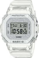 BABY-G BGD-565: сияющий стиль и надежность в прозрачном дизайне. Погрузитесь в мир сверкающих оттенков с этими уникальными часами, где мерцающий циферблат сочетается с прозрачным ремешком из прочного материала. Модель сохраняет фирменный угловатый дизайн BGD-565, дополненный полупрозрачным корпусом и эффектом кристального блеска для ноты роскоши. Это не просто стильный аксессуар - ударопрочная конструкция и водонепроницаемость до 100 метров делают эти часы идеальным выбором для активных девушек, ценящих как эстетику, так и надежность. С BABY-G BGD-565 вы получаете идеальный баланс красоты и функциональности в каждом моменте вашей насыщенной жизни.