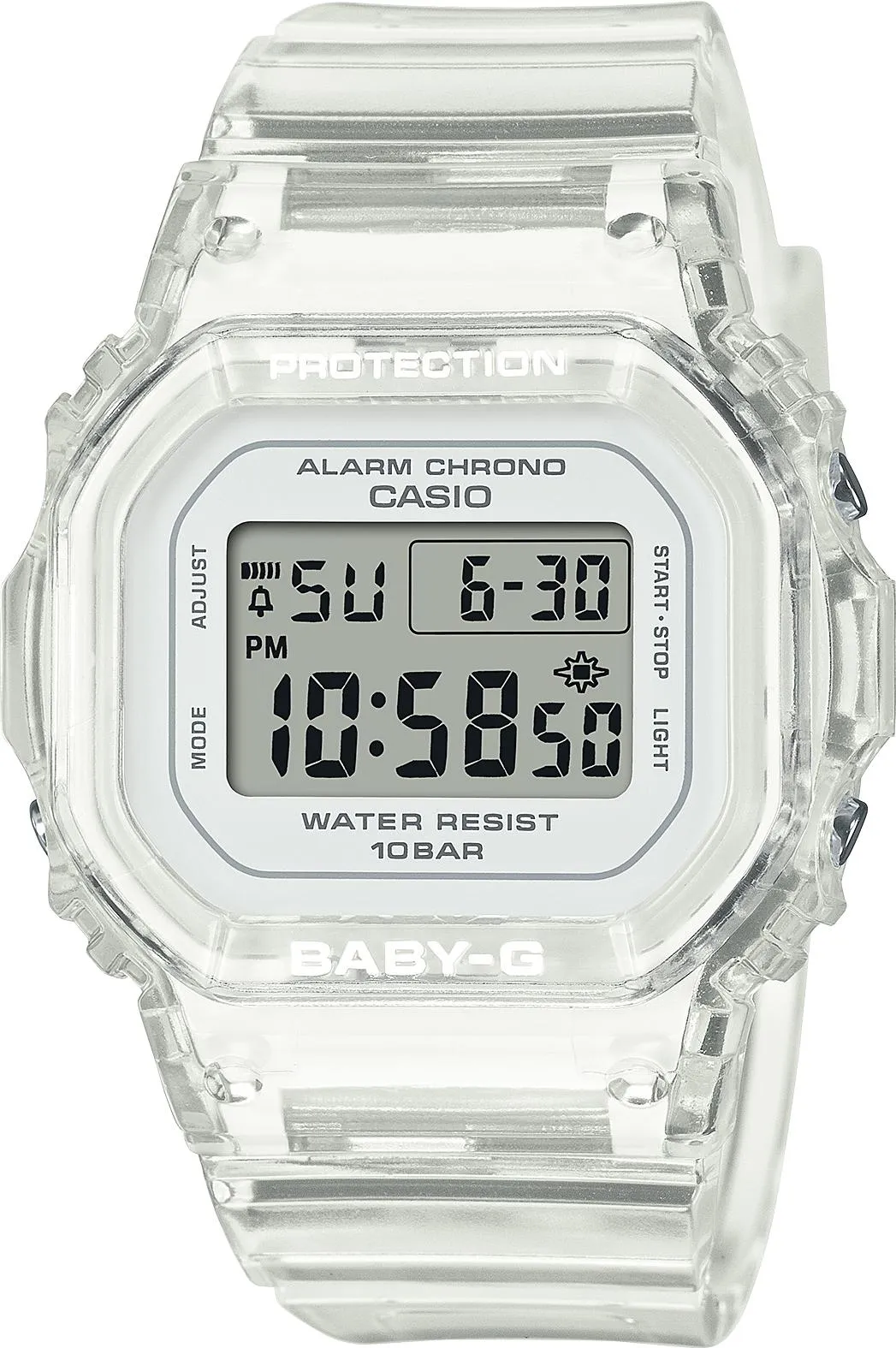 Женские наручные часы Casio Baby-G BGD-565US-7E. Точный кварцевый механизм с цифровой индикацей. Полимерный корпус надежно защищает часы от механических повреждений. На циферблате отображается текущее число, месяц и день недели. Ударопрочная конструкция часов защищает от ударов и вибрации. Функция хронографа. Функция таймера. Таймеры обратного отсчета напомнят Вам о текущих или особенных событиях, издав звуковой сигнал в установленное время. Функция будильника. Аккумулятор обеспечивает часы достаточным питанием приблизительно на 3 года. Отображение текущего времени в основных городах и конкретных областях по всему миру. После настройки автоматический календарь всегда отображает точную дату. Отображение времени возможно в 12-часовом или 24-часовом формате. Полимерный ремешок. Натуральный полимерный материал является идеальным для изготовления ремешка благодаря своей чрезвычайной прочности и гибкости. Прочное, устойчивое к царапинам минеральное стекло защищает часы от повреждений. Часы являются водонепроницаемыми до 10 Бар. Цвет корпуса: Белый, серый. Цвет циферблата: Белый. Ширина (с заводной головкой): 42мм. Толщина: 11мм. Гарантия: 2 года.