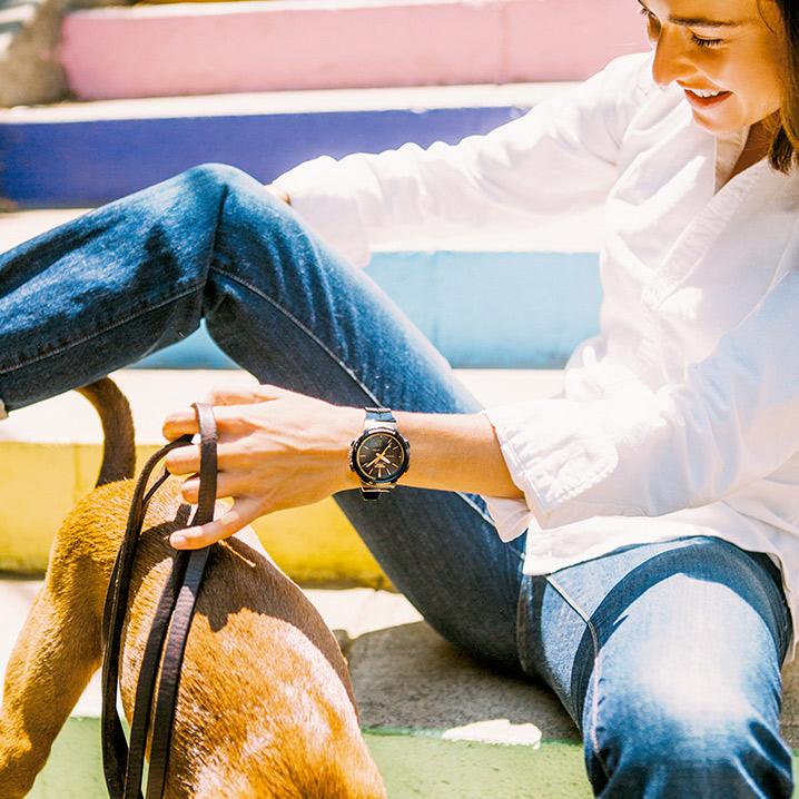 Ударопрочные часы для спортивных девушек сочетающие все преимущества G-Shock с возможностью подсчета шагов и уровнем активности. Комбинированный корпус из полупрозрачного полимера. Многофункциональный кварцевый механизм.