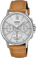 Мужские кварцевые наручные часы Casio BMS-300L-5A из коллекции Beside — это элегантная модель с классическим характером, сочетающая практичность и современный стиль. Серебристый цвет корпуса и кожаный ремешок подчёркивают сдержанную эстетику часов и делают их универсальным аксессуаром для делового и повседневного образа. Модель оснащена надёжным кварцевым механизмом калибра 5374, который обеспечивает точный и стабильный ход. На субциферблатах отображаются текущая дата, день недели и время суток по 24-часовой шкале, что повышает функциональность часов в ежедневной эксплуатации. Корпус выполнен из нержавеющей стали. Ремешок из натуральной кожи обеспечивает комфортную посадку на запястье и подчёркивает классический стиль часов. Водонепроницаемость WR50 (5 атм).