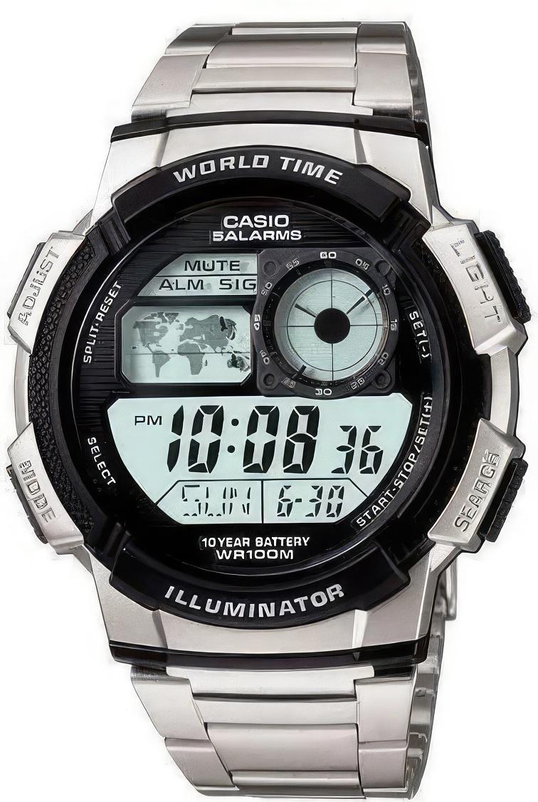 Многофункциональные часы с цифровой индикацией для активного отдыха. Надежные и недорогие. Прочный пластиковый корпус, водостойкость до 100 метров. Японский кварцевый механизм, батарея со сроком службы 10 лет, яркая светодиодная подсветка.