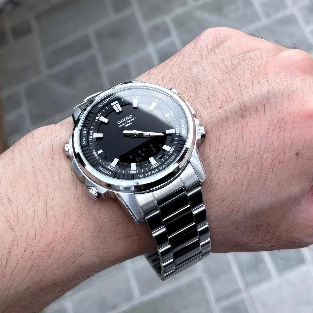Мужские наручные часы Casio Collection AMW-880D-1A. Точный кварцевый механизм с аналого-цифровой индикацией. Корпус изготовлен из высококачественной нержавеющей стали 316L с высокими антикоррозийными свойствами. Светодиодная подсветка. На циферблате отображается текущее число, месяц и день недели. Функция хронографа. Функция будильника. Аккумулятор обеспечивает часы достаточным питанием приблизительно на 10 лет. Отображение текущего времени в основных городах и конкретных областях по всему миру. После настройки автоматический календарь всегда отображает точную дату. Отображение времени возможно в 12-часовом или 24-часовом формате. Браслет из нержавеющей стали. Прочное, устойчивое к царапинам минеральное стекло защищает часы от повреждений. Часы являются водонепроницаемыми до 5 Бар. Цвет корпуса: Серебристый. Цвет циферблата: Черный. Ширина (с заводной головкой): 52мм. Толщина: 12мм. Гарантия: 2 года.