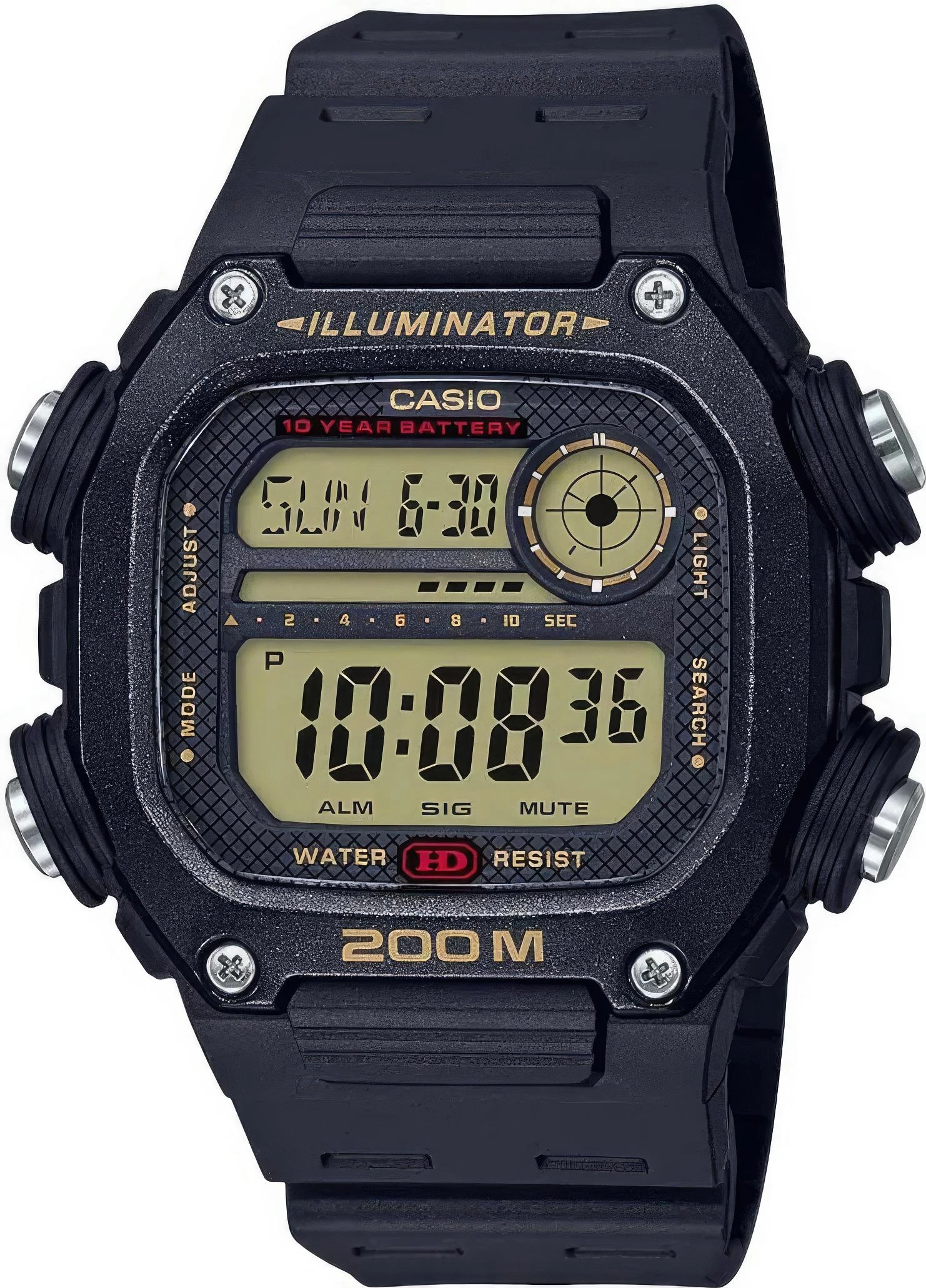 Прочное, устойчивое к царапинам минеральное стекло защищает часы от повреждений. - Корпус из полимерного пластика