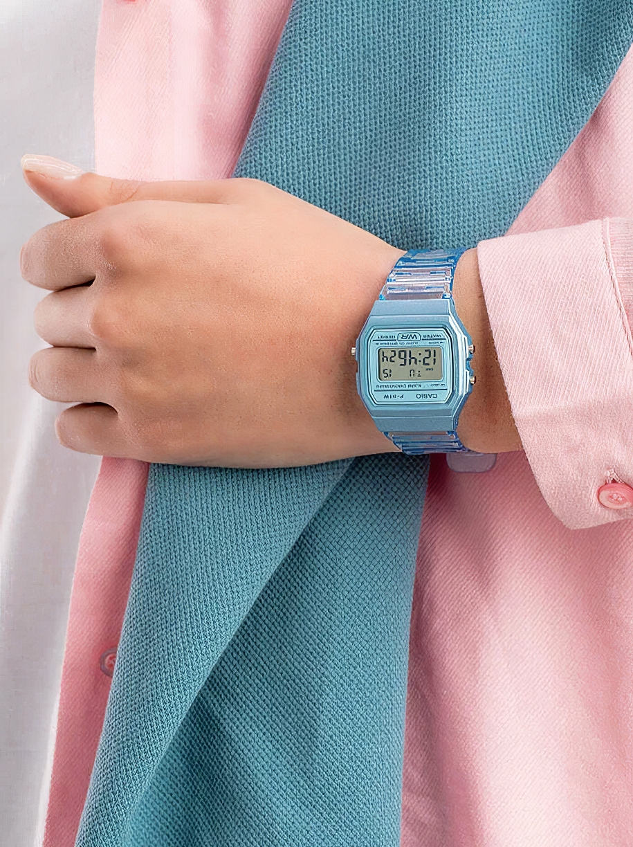 Яркие, полупрозрачные пластиковые часы водонепроницаемы, а их аккумулятор обеспечивает часы достаточным питанием приблизительно на семь лет.