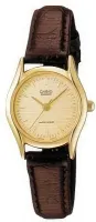 Женские наручные часы Casio Collection LTP-1094Q-9A. Точный кварцевый механизм с аналоговой индикацией. Корпус изготовлен из высококачественной нержавеющей стали 316L с высокими антикоррозийными свойствами. Ремешок изготовлен из кожи. Прочное, устойчивое к царапинам минеральное стекло защищает часы от повреждений. Часы являются водонепроницаемыми до 3 Бар. Цвет корпуса: Желтое золото. Цвет циферблата: Золотистый. Ширина (с заводной головкой): 23мм. Толщина: 7мм. Гарантия: 2 года.