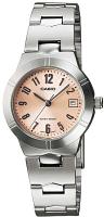 Женские наручные часы Casio Collection LTP-1241D-4A3. Точный кварцевый механизм с аналоговой индикацией. Корпус изготовлен из высококачественной нержавеющей стали 316L с высокими антикоррозийными свойствами. На циферблате отображается текущее число месяца. Браслет из нержавеющей стали. Прочное, устойчивое к царапинам минеральное стекло защищает часы от повреждений. Часы являются водонепроницаемыми до 3 Бар. Цвет корпуса: Серебристый. Цвет циферблата: Розовый. Ширина (с заводной головкой): 25мм. Толщина: 7мм. Гарантия: 2 года.