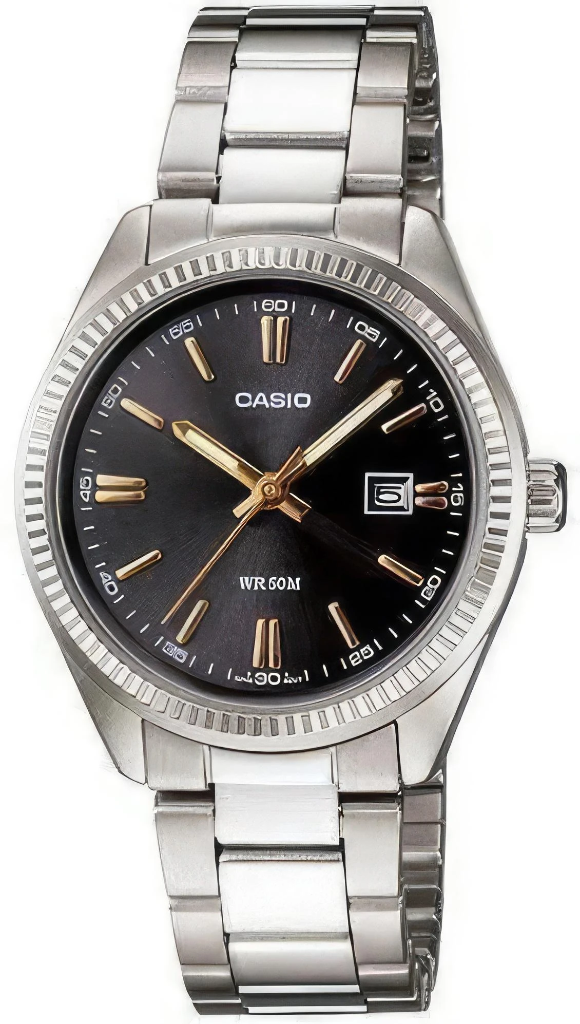 Наручные кврцевые часы с кварцевым механизмом, оснащенном центральными стрелками и индикатором даты в "3 часах". Корпус стальной полированный на браслете.