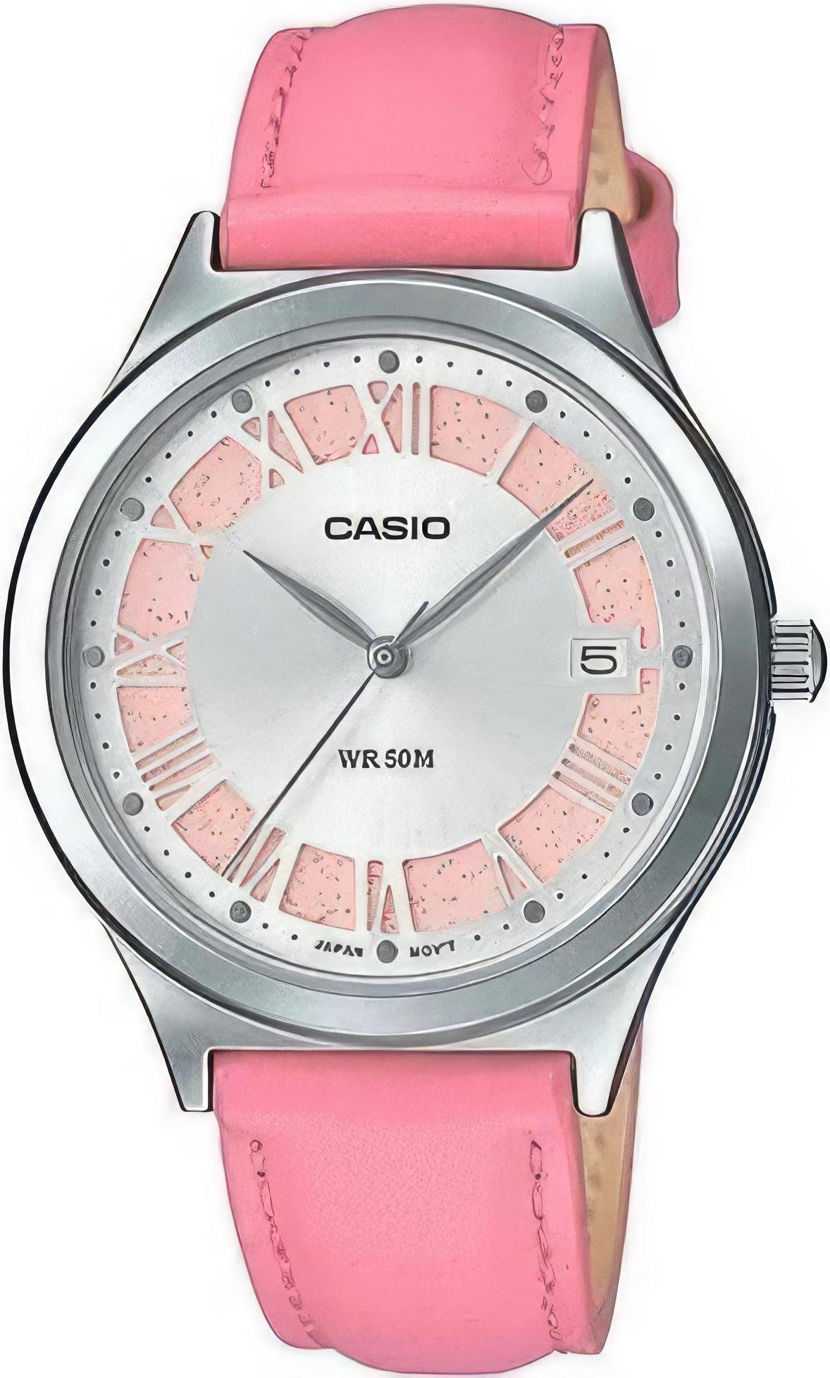 Женские наручные часы Casio Collection LTP-E141L-4A3. Точный кварцевый механизм с аналоговой индикацией. Корпус изготовлен из высококачественной нержавеющей стали 316L с высокими антикоррозийными свойствами. На циферблате отображается текущее число месяца. Ремешок изготовлен из кожи. Прочное, устойчивое к царапинам минеральное стекло защищает часы от повреждений. Часы являются водонепроницаемыми до 5 Бар. Цвет корпуса: Серебристый. Цвет циферблата: Серебристый. Ширина (с заводной головкой): 34мм. Толщина: 9мм. Гарантия: 2 года.