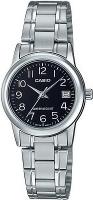 Женские наручные часы Casio Collection LTP-V002D-1B. Точный кварцевый механизм с аналоговой индикацией. Корпус изготовлен из высококачественной нержавеющей стали 316L с высокими антикоррозийными свойствами. На циферблате отображается текущее число месяца. Браслет из нержавеющей стали. Прочное, устойчивое к царапинам минеральное стекло защищает часы от повреждений. Часы являются водонепроницаемыми до 3 Бар. Цвет корпуса: Серебристый. Цвет циферблата: Черный. Ширина (с заводной головкой): 25мм. Толщина: 9мм. Гарантия: 2 года.
