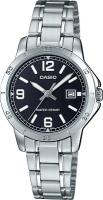 Женские наручные часы Casio Collection LTP-V004D-1B2. Точный кварцевый механизм с аналоговой индикацией. Корпус изготовлен из высококачественной нержавеющей стали 316L с высокими антикоррозийными свойствами. На стрелки и отметки нанесен светонакопительный состав, благодаря этому считывать информацию с циферблата возможно и в темноте. На циферблате отображается текущее число месяца. Браслет из нержавеющей стали. Прочное, устойчивое к царапинам минеральное стекло защищает часы от повреждений. Часы являются водонепроницаемыми до 3 Бар. Цвет корпуса: Серебристый. Цвет циферблата: Черный. Ширина (с заводной головкой): 30мм. Толщина: 8мм. Гарантия: 2 года.