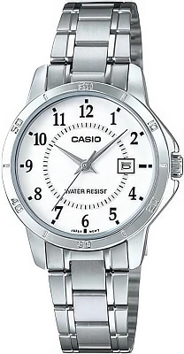 Женские наручные часы Casio Collection LTP-V004L-2B. Точный кварцевый механизм с аналоговой индикацией. Корпус изготовлен из высококачественной нержавеющей стали 316L с высокими антикоррозийными свойствами. На стрелки и отметки нанесен светонакопительный состав, благодаря этому считывать информацию с циферблата возможно и в темноте. На циферблате отображается текущее число месяца. Ремешок изготовлен из кожи. Прочное, устойчивое к царапинам минеральное стекло защищает часы от повреждений. Часы являются водонепроницаемыми до 3 Бар. Цвет корпуса: Серебристый. Цвет циферблата: Синий. Ширина (с заводной головкой): 35мм. Толщина: 8мм. Гарантия: 2 года.