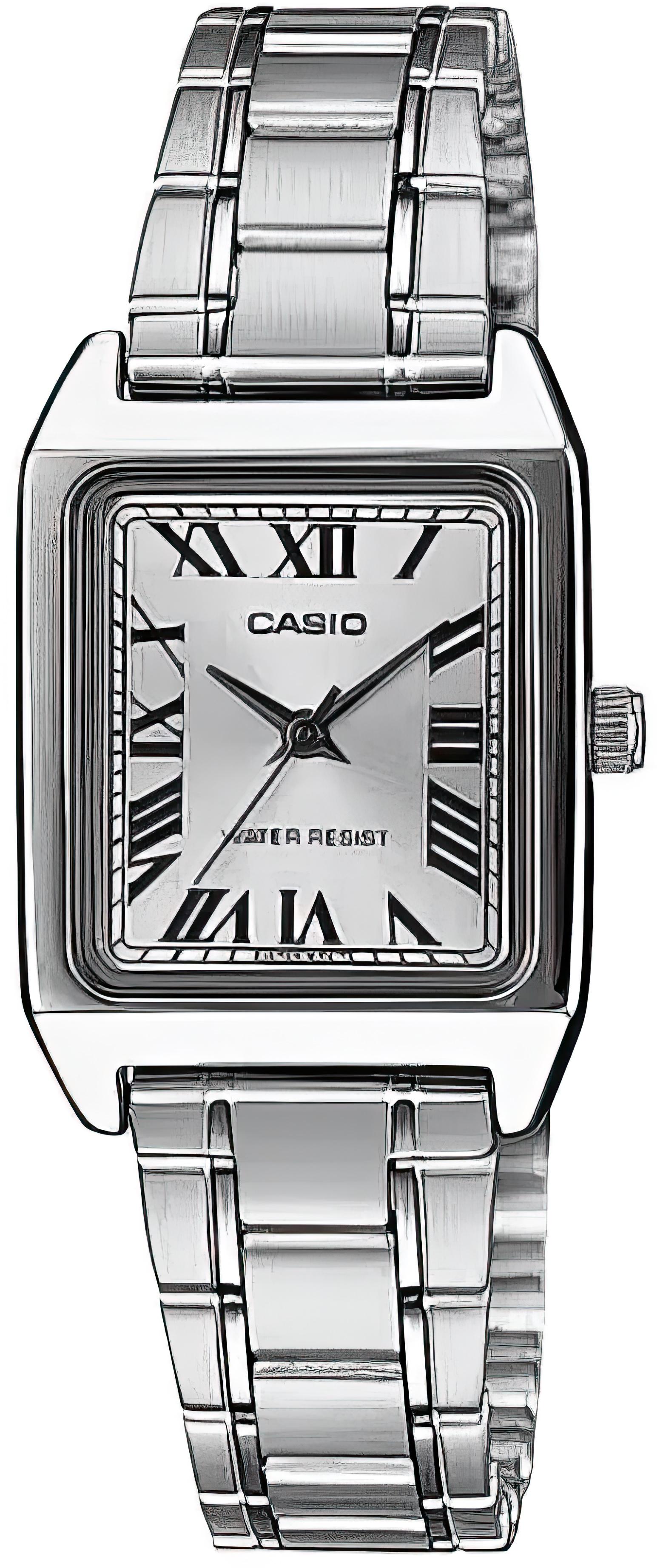 Женские наручные часы Casio Collection LTP-V007D-7B. Точный кварцевый механизм с аналоговой индикацией. Корпус изготовлен из высококачественной нержавеющей стали 316L с высокими антикоррозийными свойствами. Браслет из нержавеющей стали. Прочное, устойчивое к царапинам минеральное стекло защищает часы от повреждений. Часы являются водонепроницаемыми до 3 Бар. Цвет корпуса: Серебристый. Цвет циферблата: Серебристый. Ширина (с заводной головкой): 31мм. Толщина: 7мм. Гарантия: 2 года.