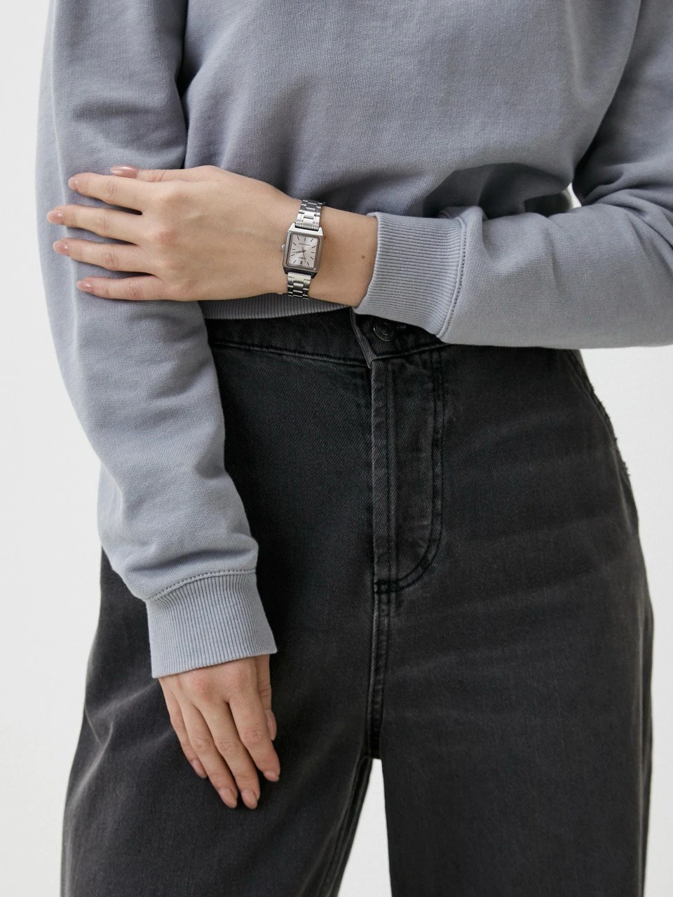 Удобная застежка, расстегиваемая одним касанием. Благодаря своей конструкции она никогда не размыкается полностью, а раскладывается на три части. Это позволяет легко снимать и надевать часы, сводя вероятность их падения или потери при случайном расстегивании к минимуму.