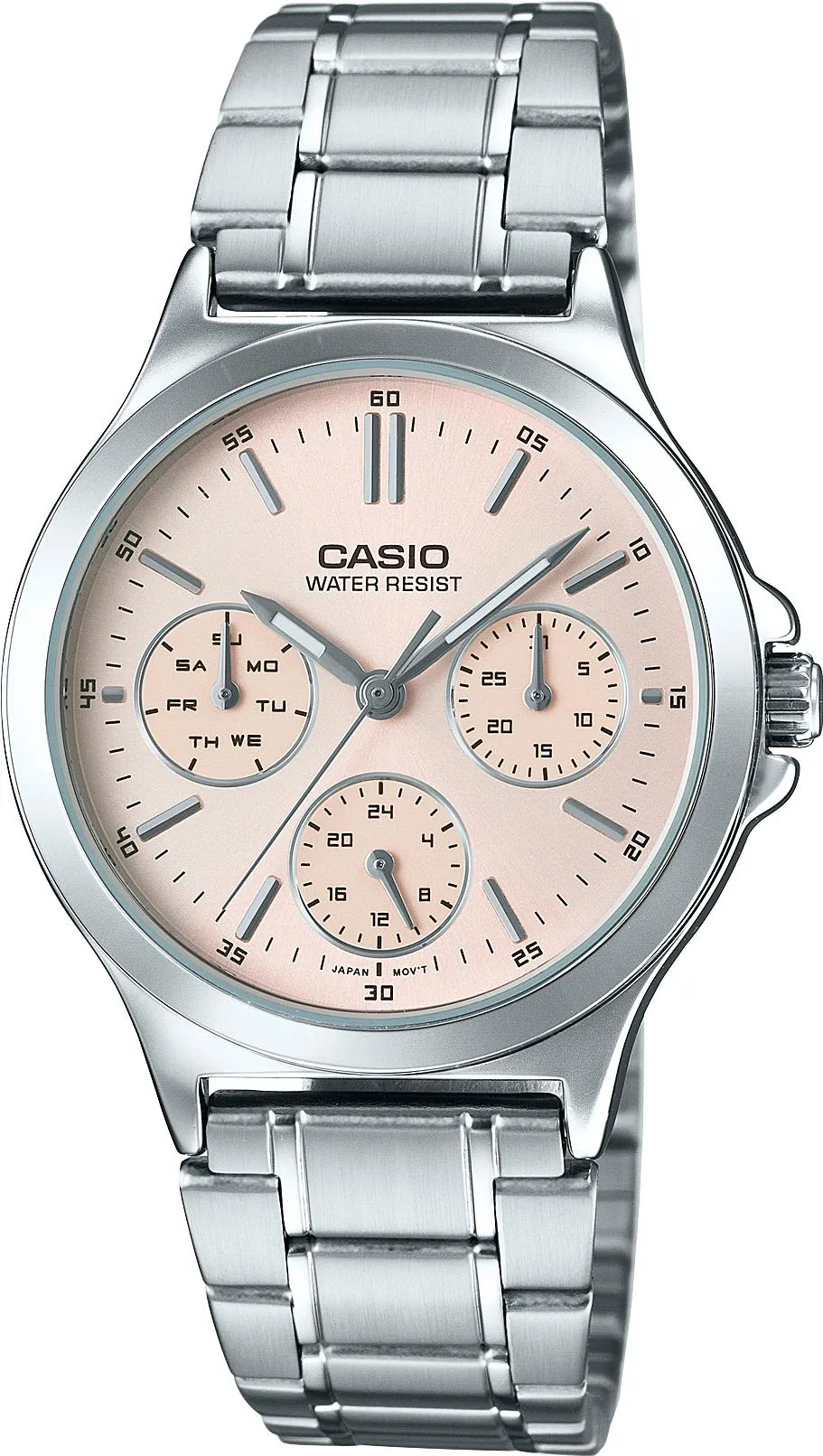 Кварцевый механизм, модуль 5420, с аналоговой индикацией. Точность хода с погрешностью не более ±20 секунд в месяц. Элемент питания SR920SW рассчитан на 3 года работы. Функции: