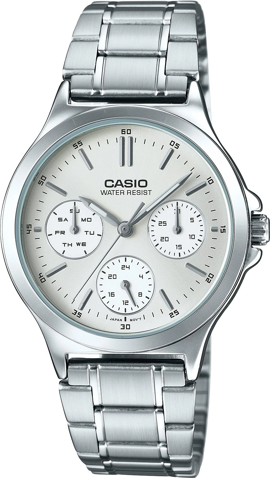 Кварцевый механизм, модуль 5420, с аналоговой индикацией. Точность хода с погрешностью не более ±20 секунд в месяц. Элемент питания SR920SW рассчитан на 3 года работы. Функции: