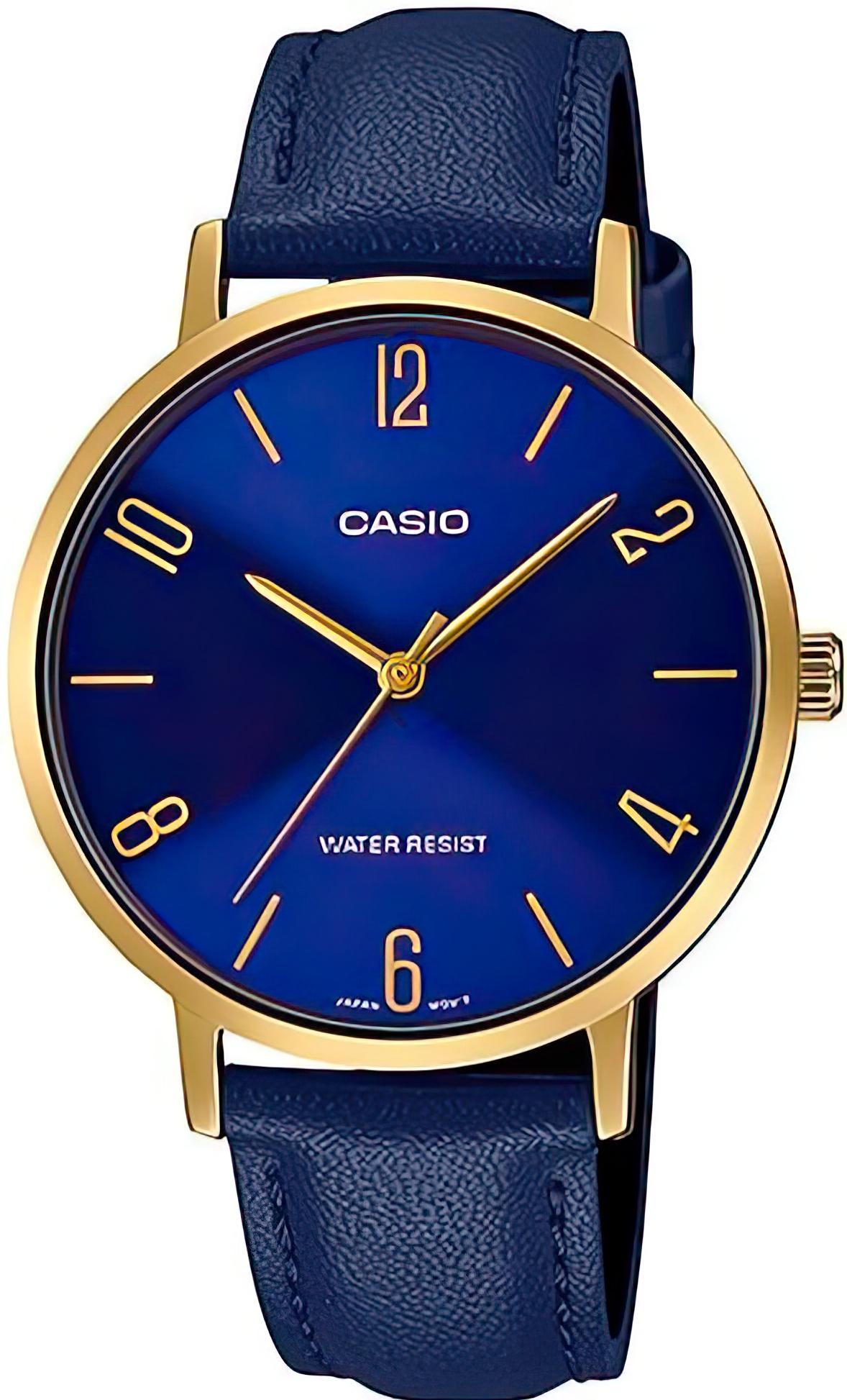 Женские наручные часы Casio Collection LTP-VT01GL-2B. Точный кварцевый механизм с аналоговой индикацией. Корпус изготовлен из высококачественной нержавеющей стали 316L с высокими антикоррозийными свойствами. Ремешок изготовлен из кожи. Прочное, устойчивое к царапинам минеральное стекло защищает часы от повреждений. Часы являются водонепроницаемыми до 3 Бар. Цвет циферблата: Синий. Ширина (с заводной головкой): 34мм. Толщина: 8мм. Гарантия: 2 года.