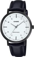 Женские наручные часы Casio Collection LTP-VT03BL-7B. Точный кварцевый механизм с аналоговой индикацией. Ремешок изготовлен из кожи. Аккумулятор обеспечивает часы достаточным питанием приблизительно на 3 года. Браслет из нержавеющей стали. Прочное, устойчивое к царапинам минеральное стекло защищает часы от повреждений. Часы являются водонепроницаемыми до 3 Бар. Цвет циферблата: Черный. Цвет корпуса: Белый. Толщина: 7 мм. Гарантия: 2 года.