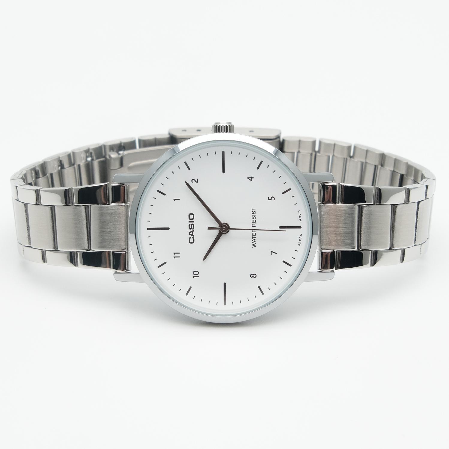 Женские наручные часы Casio Collection LTP-VT03D-7B. Точный кварцевый механизм с аналоговой индикацией. Браслет из нержавеющей стали. Аккумулятор обеспечивает часы достаточным питанием приблизительно на 3 года. Браслет из нержавеющей стали. Прочное, устойчивое к царапинам минеральное стекло защищает часы от повреждений. Часы являются водонепроницаемыми до 3 Бар. Цвет циферблата: Серебристый. Цвет корпуса: Белый. Толщина: 7 мм. Гарантия: 2 года.