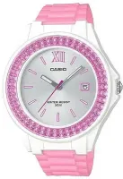 Японские женские кварцевые часы из серии Standart Analogue. Круглый корпус из полимерного материала розового цвета. Имитация камней на пластиковом безеле. Органическое стекло. Водозащита 50м. Розовый пластиковый ремешок с обычной пряжкой.