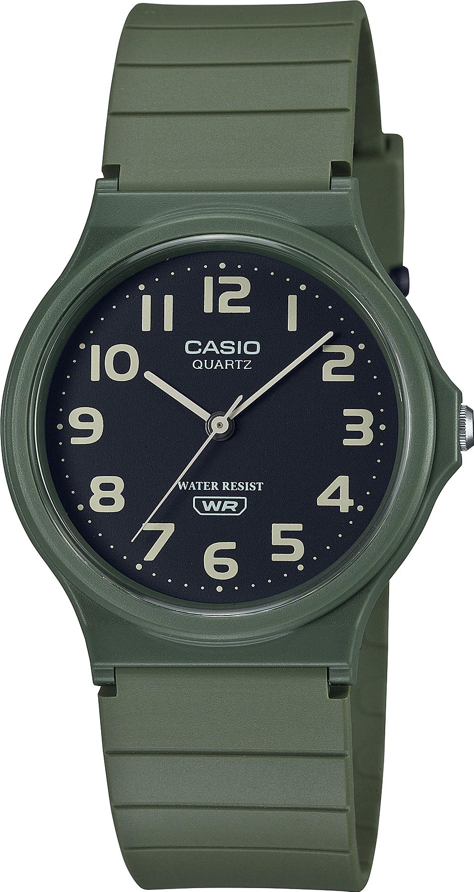 Мужские наручные часы Casio Collection MQ-24UC-3B. Точный кварцевый механизм с аналоговой индикацией. Полимерный корпус надежно защищает часы от механических повреждений. Ударопрочная конструкция часов защищает от ударов и вибрации. Аккумулятор обеспечивает часы достаточным питанием приблизительно на 3 года. Ударопрочная конструкция часов защищает от ударов и вибрации. Аккумулятор обеспечивает часы достаточным питанием приблизительно на 3 года. Полимерный ремешок. Натуральный полимерный материал является идеальным для изготовления ремешка благодаря своей чрезвычайной прочности и гибкости. Органическое стекло. Часы являются водонепроницаемыми до 3 Бар. Цвет корпуса: Зеленый. Цвет циферблата: Черный. Ширина (с заводной головкой): 39мм. Толщина: 8мм. Гарантия: 2 года. Другие наименования модели: MQ-24UC-3BEF.