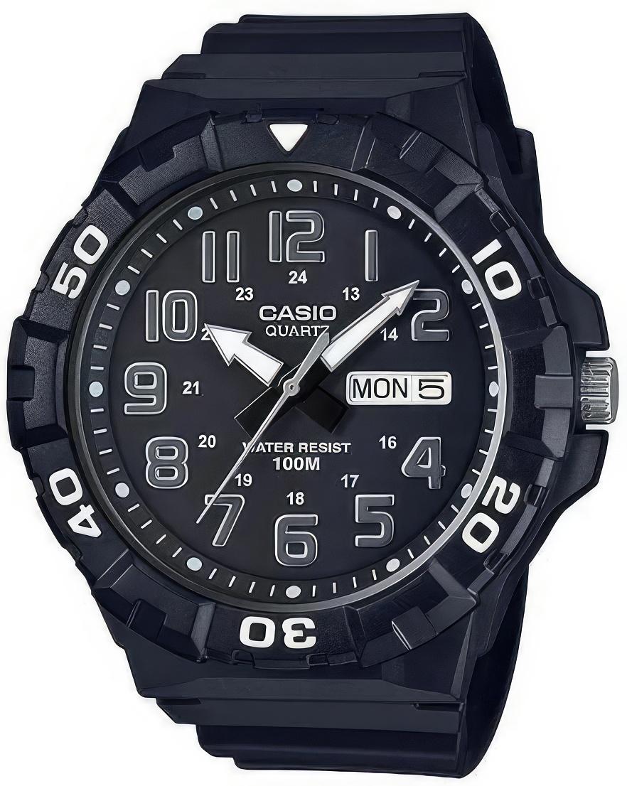 Точный кварцевый механизм. Центральная секундная стрелка. Окошко даты и дня недели. • Точность хода не хуже от -10 до +20 сек. в месяц. • Органическое стекло. • Светонакопительный состав на стрелках. • Водозащита до 10 АТМ. • Поворотный безель. • Прочный резиновый ремешок. • Простая ремешковая застежка. • Срок службы батареи 3 года.