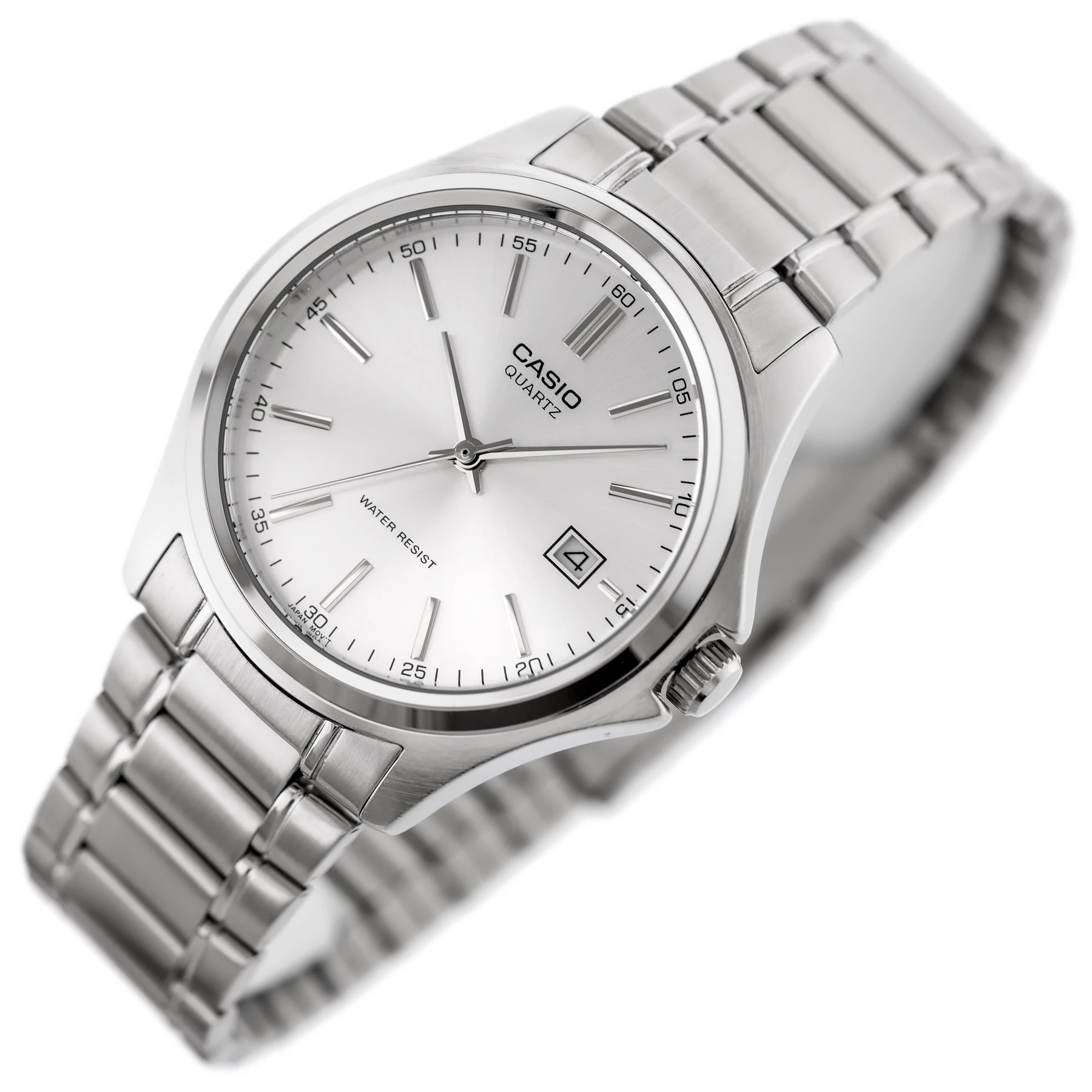 Мужские наручные часы с аналоговой индикацией. Корпус стальной полированный. Механизм кварцевый с центральной секундной стрелкой и индикатором даты.