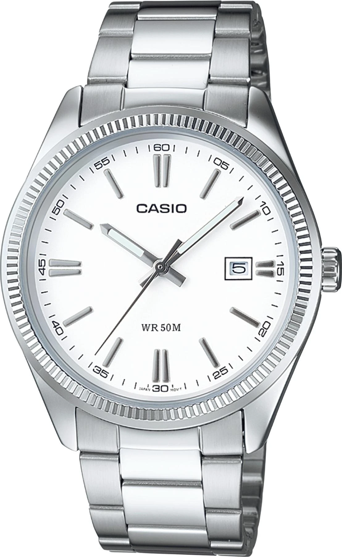 Мужские наручные часы с аналоговой индикацией в стальном корпусе. Механизм кварцевый с центральной секундной стрелкой и индикатором даты.