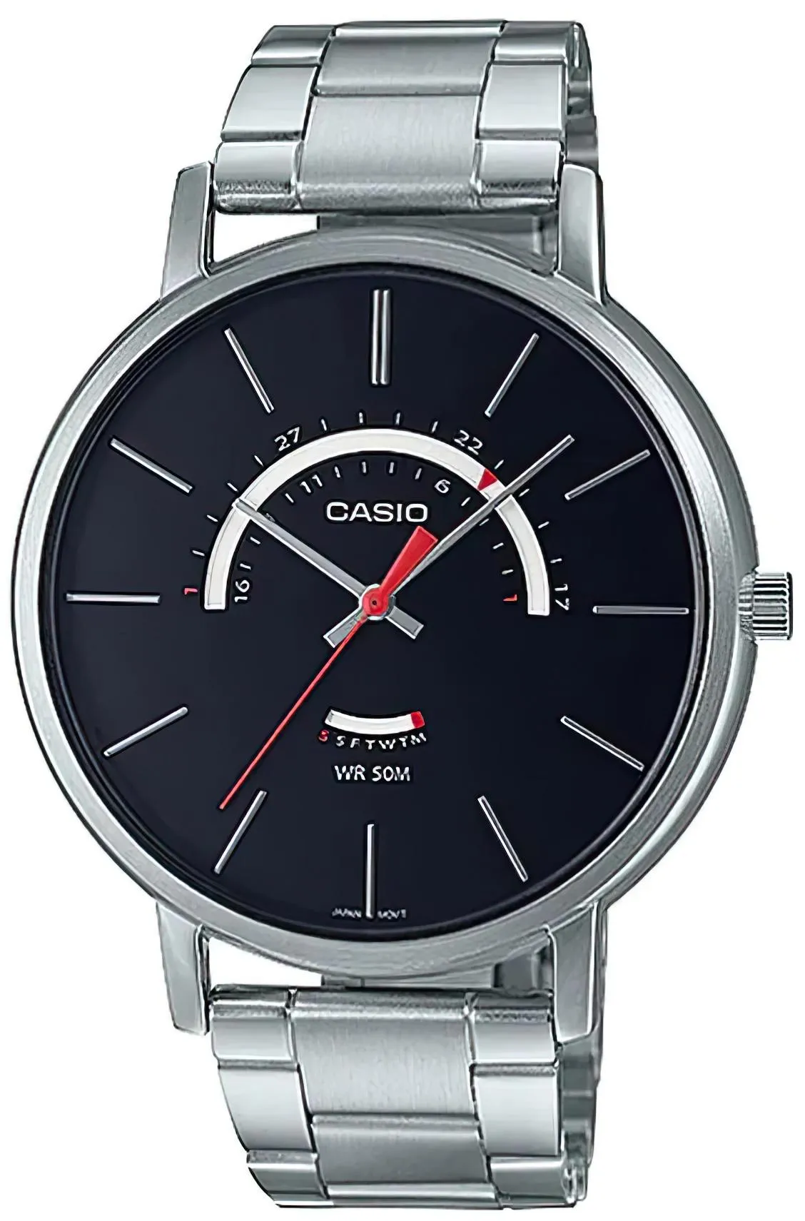 Мужские наручные часы Casio Collection MTP-B105D-1A. Точный кварцевый механизм с аналоговой индикацией. Корпус изготовлен из высококачественной нержавеющей стали 316L с высокими антикоррозийными свойствами. На циферблате отображается текущее число месяца и день недели. Браслет из нержавеющей стали. Прочное, устойчивое к царапинам минеральное стекло защищает часы от повреждений. Часы являются водонепроницаемыми до 5 Бар. Цвет корпуса: Серебристый. Цвет циферблата: Черный. Гарантия: 2 года.