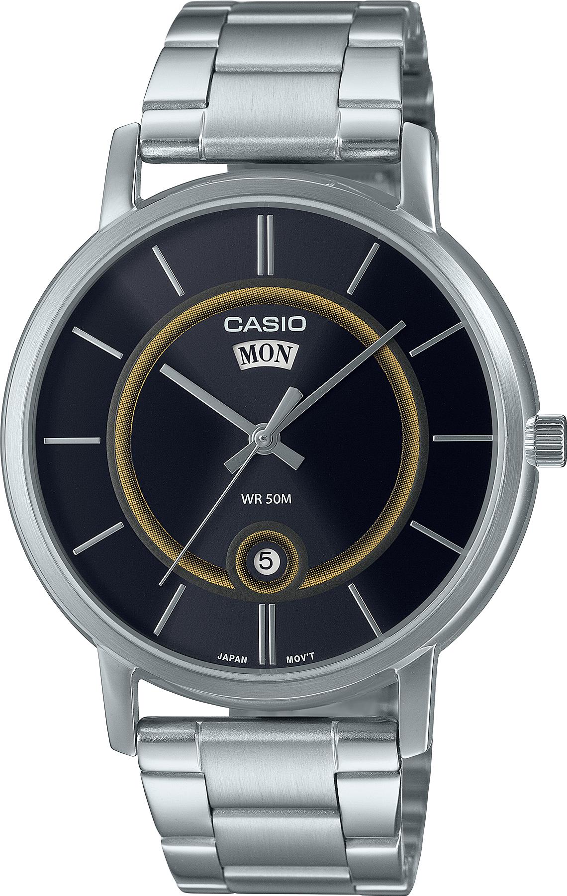 Мужские наручные часы Casio Collection MTP-B120D-1A. Точный кварцевый механизм с аналоговой индикацией. Браслет из нержавеющей стали. Аккумулятор обеспечивает часы достаточным питанием приблизительно на 3 года. Браслет из нержавеющей стали. Прочное, устойчивое к царапинам минеральное стекло защищает часы от повреждений. На циферблате отображается текущее число месяца и день недели. Часы являются водонепроницаемыми до 5 Бар. Цвет циферблата: Серебристый. Цвет корпуса: Черный. Толщина: 8 мм. Гарантия: 2 года.