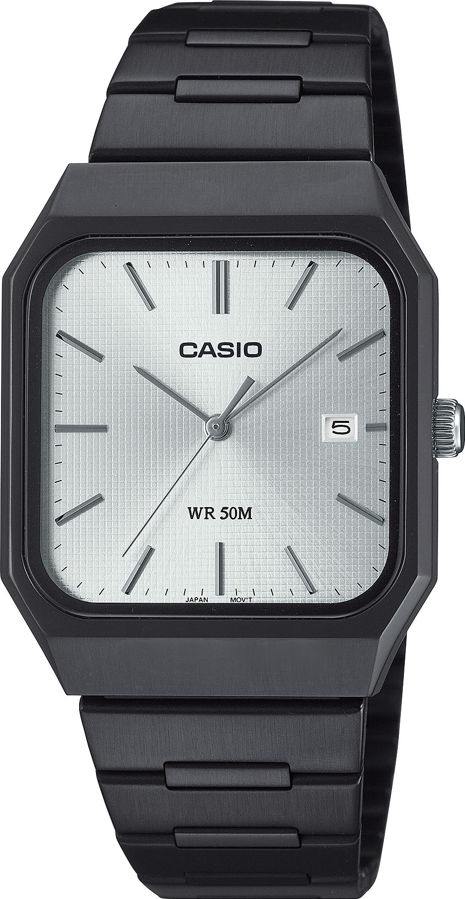 Casio MTP-B185B-7A – мужские кварцевые часы с точностью ±20 сек./мес. и водозащитой 5 бар. Черный стальной корпус и браслет, минеральное стекло, индикация даты и 12-часовой формат. Батарея работает 3 года.