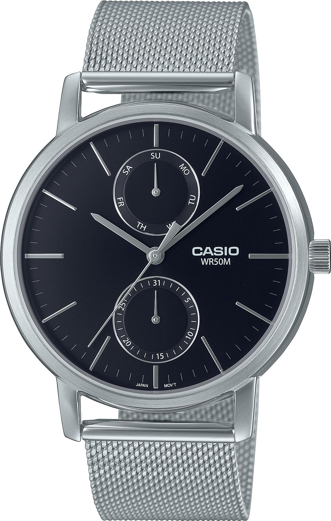 Мужские наручные часы Casio Collection MTP-B310M-1A. Точный кварцевый механизм с аналоговой индикацией. Корпус изготовлен из высококачественной нержавеющей стали 316L с высокими антикоррозийными свойствами. На циферблате отображается текущее число месяца и день недели. Аккумулятор обеспечивает часы достаточным питанием приблизительно на 3 года. Браслет из нержавеющей стали. Прочное, устойчивое к царапинам минеральное стекло защищает часы от повреждений. Часы являются водонепроницаемыми до 5 Бар. Цвет корпуса: Серебристый. Цвет циферблата: Черный. Ширина (с заводной головкой): 48мм. Толщина: 10мм. Гарантия: 2 года. Другие наименования модели: MTP-B310M-1AVEF, MTP-B310M-1AVD.