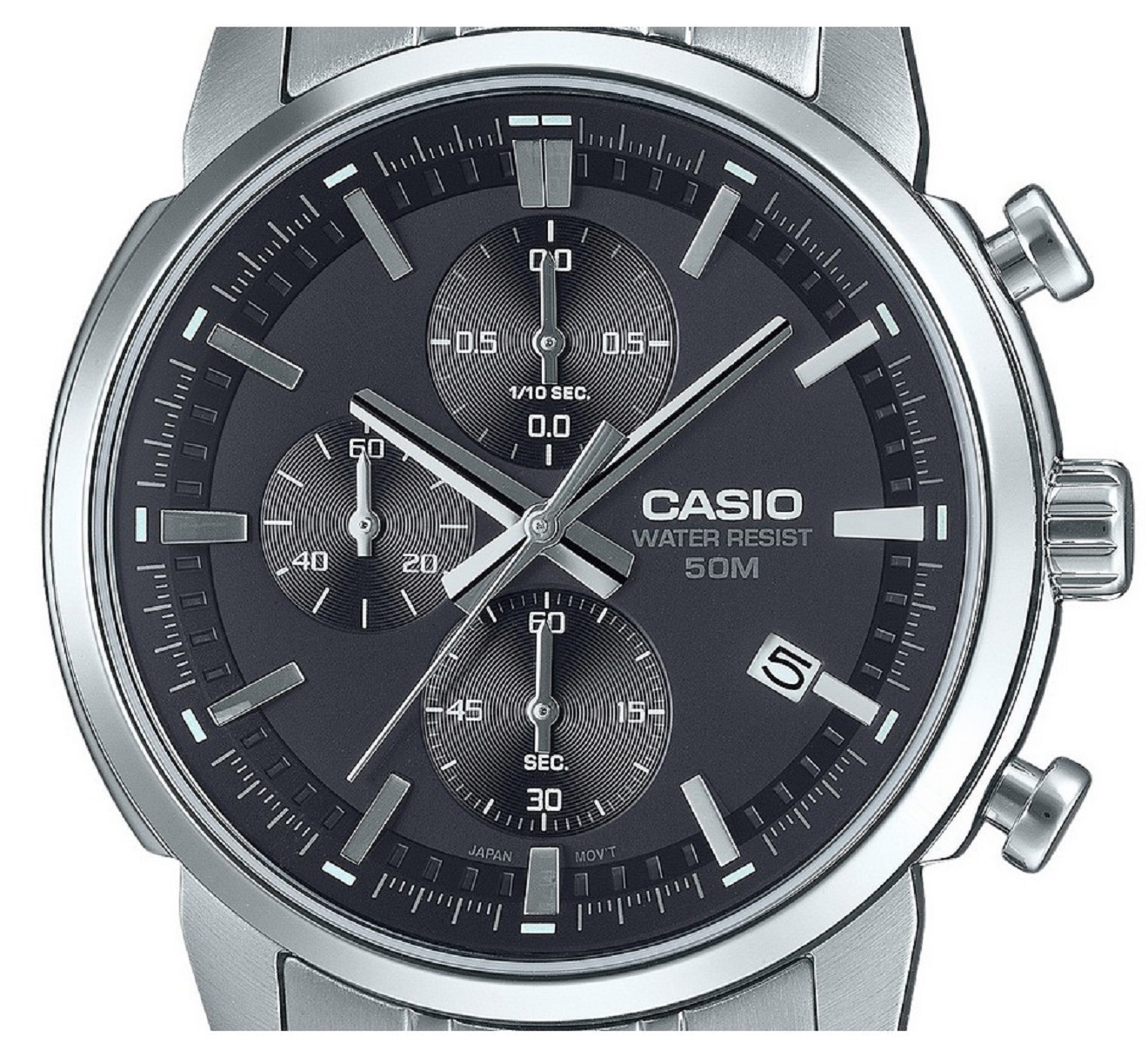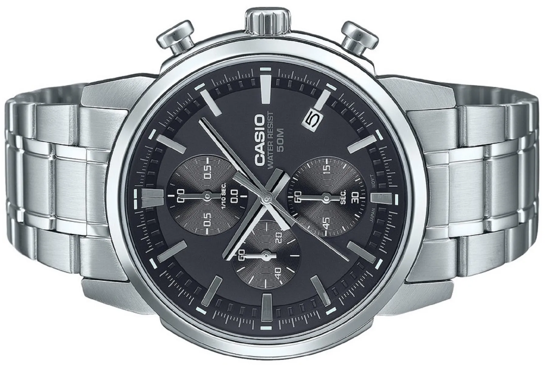 Мужские наручные часы Casio Collection MTP-E510D-1A1. Точный кварцевый механизм с аналоговой индикацией. Браслет из нержавеющей стали. Функция хронографа. Браслет из нержавеющей стали. Прочное, устойчивое к царапинам минеральное стекло защищает часы от повреждений. На циферблате отображается текущее число месяца. Часы являются водонепроницаемыми до 5 Бар. Цвет циферблата: Серый. Цвет корпуса: Черный. Высота (с ушками): 46 мм. Толщина: 11 мм. Гарантия: 2 года.