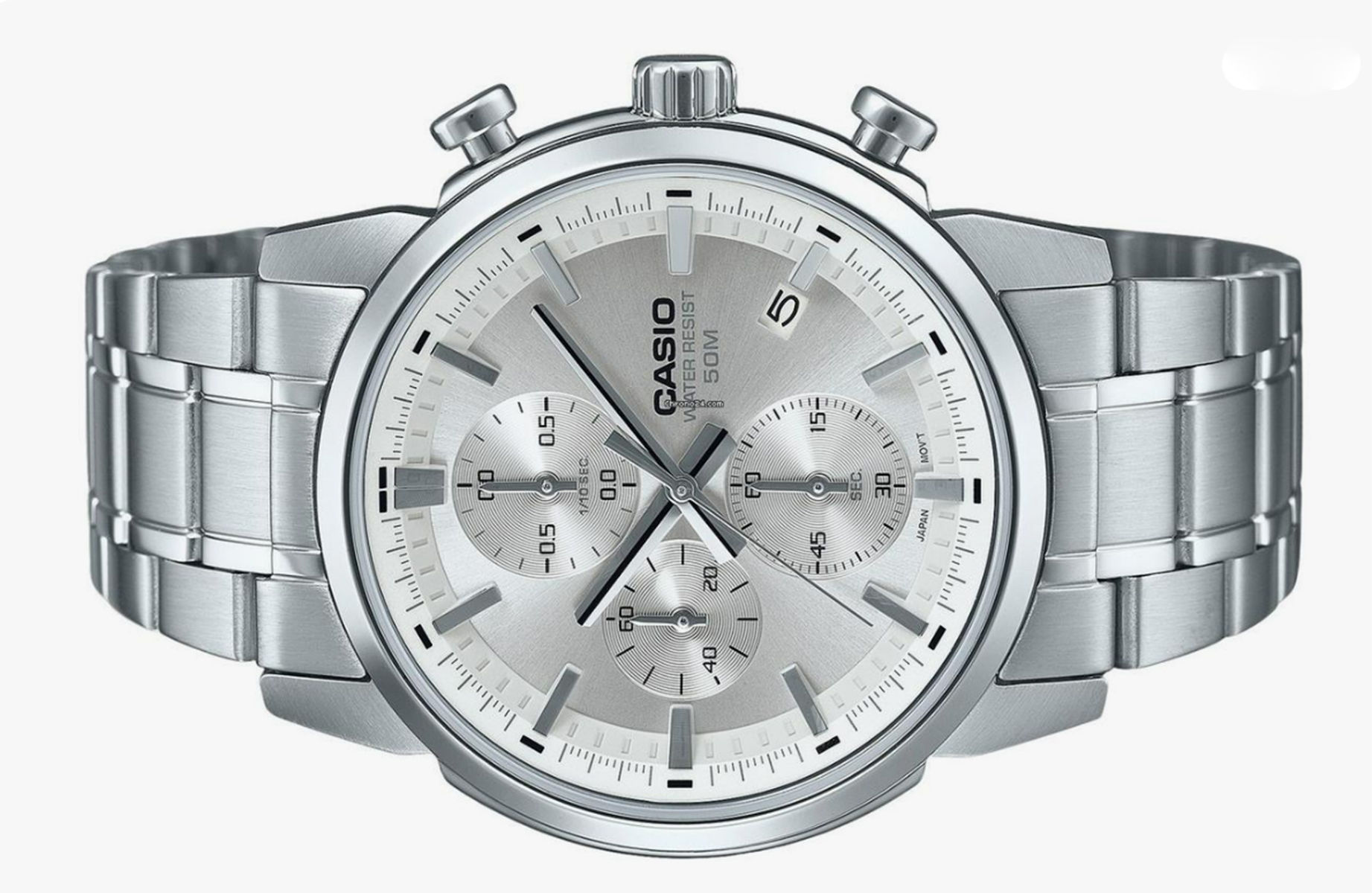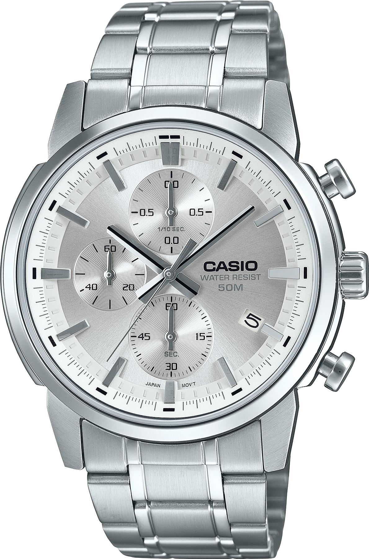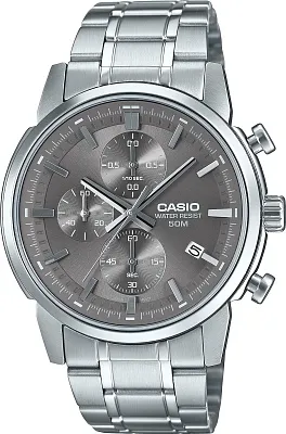 Мужские наручные часы Casio Collection MTP-E510D-7A. Точный кварцевый механизм с аналоговой индикацией. Браслет из нержавеющей стали. Функция хронографа. Браслет из нержавеющей стали. Прочное, устойчивое к царапинам минеральное стекло защищает часы от повреждений. На циферблате отображается текущее число месяца. Часы являются водонепроницаемыми до 5 Бар. Цвет циферблата: Серебристый. Цвет корпуса: Серебристый. Высота (с ушками): 46 мм. Толщина: 11 мм. Гарантия: 2 года.