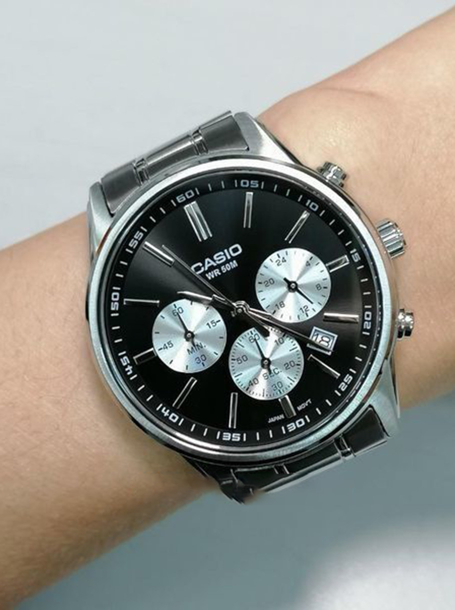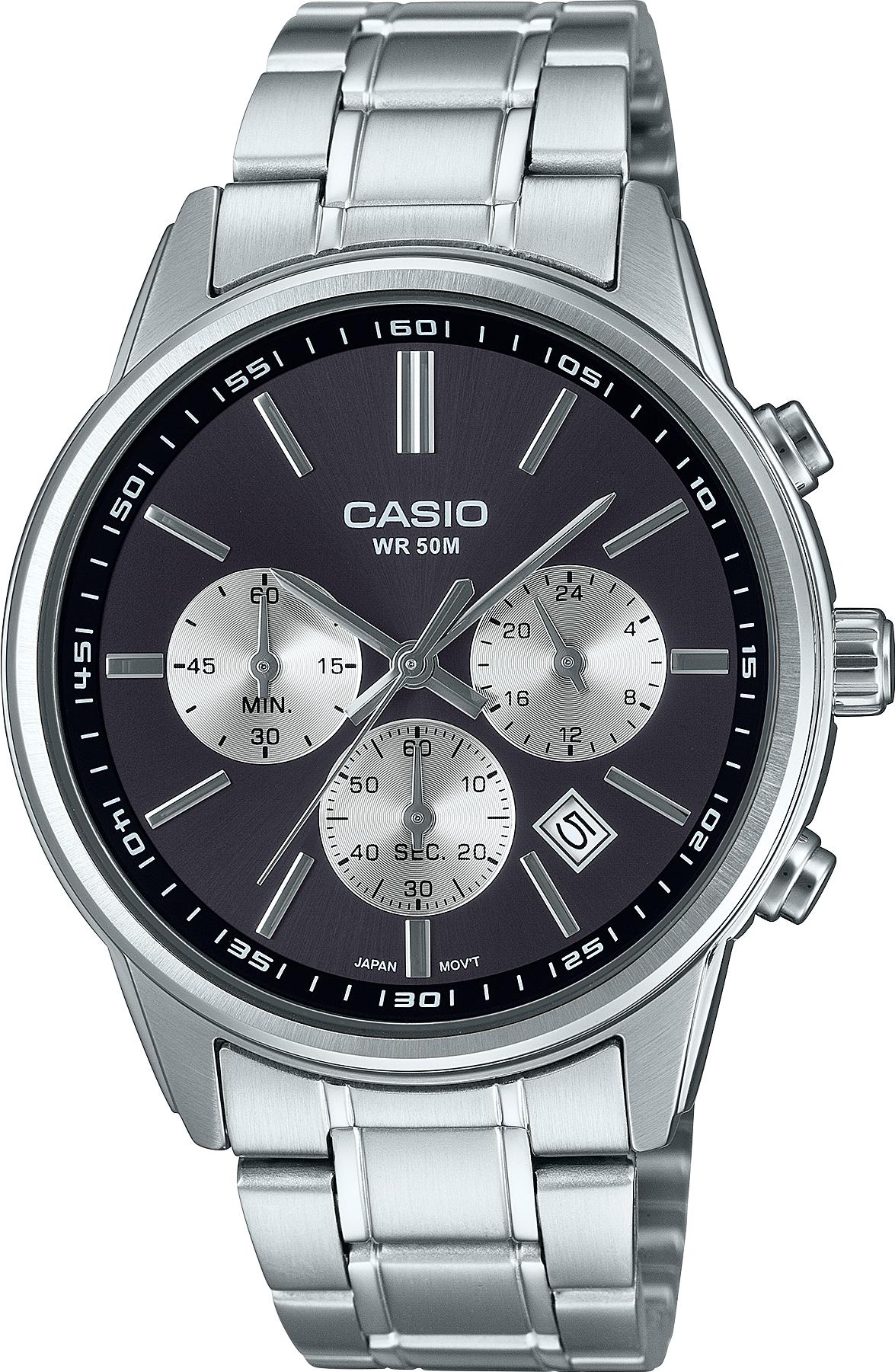 Мужские наручные часы Casio Collection MTP-E515D-1A. Точный кварцевый механизм с аналоговой индикацией. Браслет из нержавеющей стали. Функция хронографа. Отображение времени возможно в 12-часовом или 24-часовом формате. Браслет из нержавеющей стали. Прочное, устойчивое к царапинам минеральное стекло защищает часы от повреждений. На циферблате отображается текущее число месяца. Часы являются водонепроницаемыми до 5 Бар. Цвет циферблата: Серый. Цвет корпуса: Черный. Толщина: 11 мм. Гарантия: 2 года.