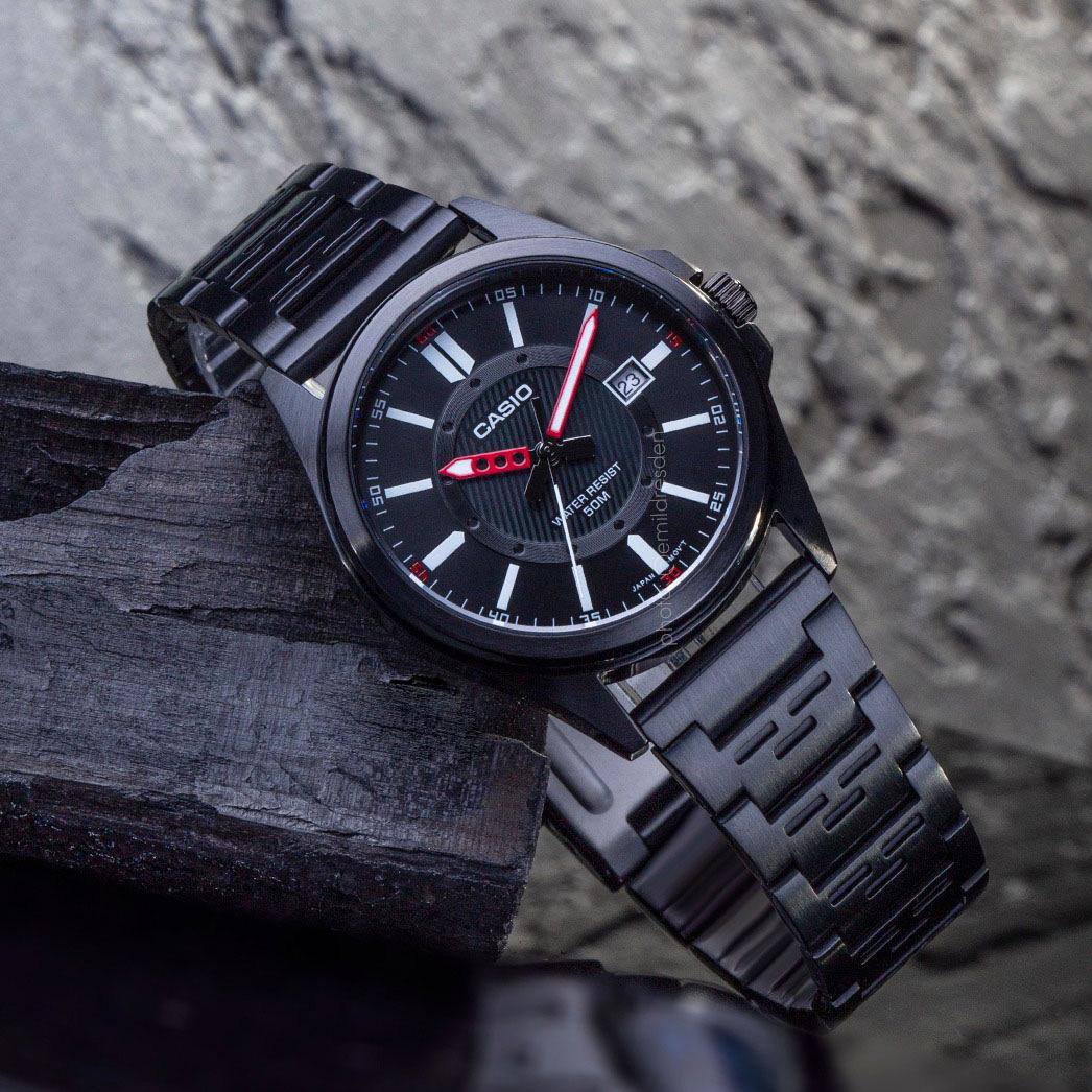 Мужские наручные часы Casio Collection MTP-E700B-1E. Точный кварцевый механизм с аналоговой индикацией. Браслет из нержавеющей стали. Аккумулятор обеспечивает часы достаточным питанием приблизительно на 3 года. Браслет из нержавеющей стали. Прочное, устойчивое к царапинам минеральное стекло защищает часы от повреждений. На циферблате отображается текущее число месяца. Часы являются водонепроницаемыми до 5 Бар. Цвет циферблата: Черный. Цвет корпуса: Черный. На стрелки и отметки нанесен светонакопительный состав, благодаря этому считывать информацию с циферблата возможно и в темноте. Толщина: 10 мм. Гарантия: 2 года.