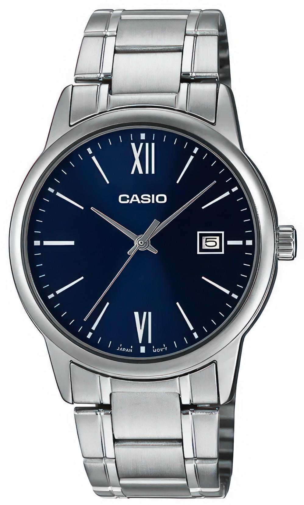Мужские наручные часы Casio Collection MTP-V002D-2B3. Точный кварцевый механизм с аналоговой индикацией. Корпус изготовлен из высококачественной часовой латуни с высокими антикоррозийными свойствами. На циферблате отображается текущее число месяца. Аккумулятор обеспечивает часы достаточным питанием приблизительно на 3 года. Браслет из нержавеющей стали. Прочное, устойчивое к царапинам минеральное стекло защищает часы от повреждений. Часы являются водонепроницаемыми до 3 Бар. Цвет корпуса: Серебристый. Цвет циферблата: Синий. Гарантия: 2 года.